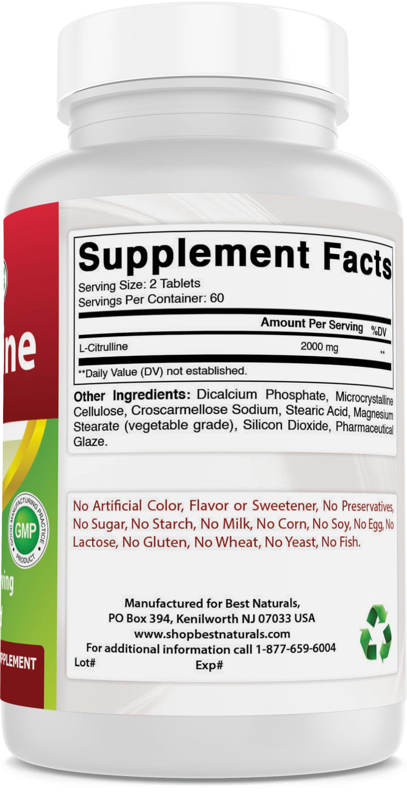 Details: Best Naturals L-Citrulline 2000mg/Serving - Non-GMO - Gluten Free - 120 Tablets