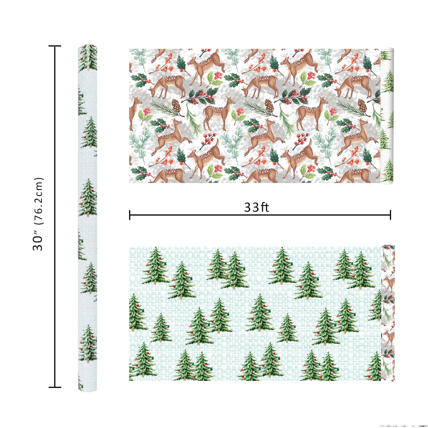 - Double-Sided Christmas Pattern: The wrapping paper features two different Christmas designs. Doe Floral printed on one side, Holiday Trees printed on the reverse. Two different Christmas patterns make it easy to present unique and varied gift, use it according to your needs
