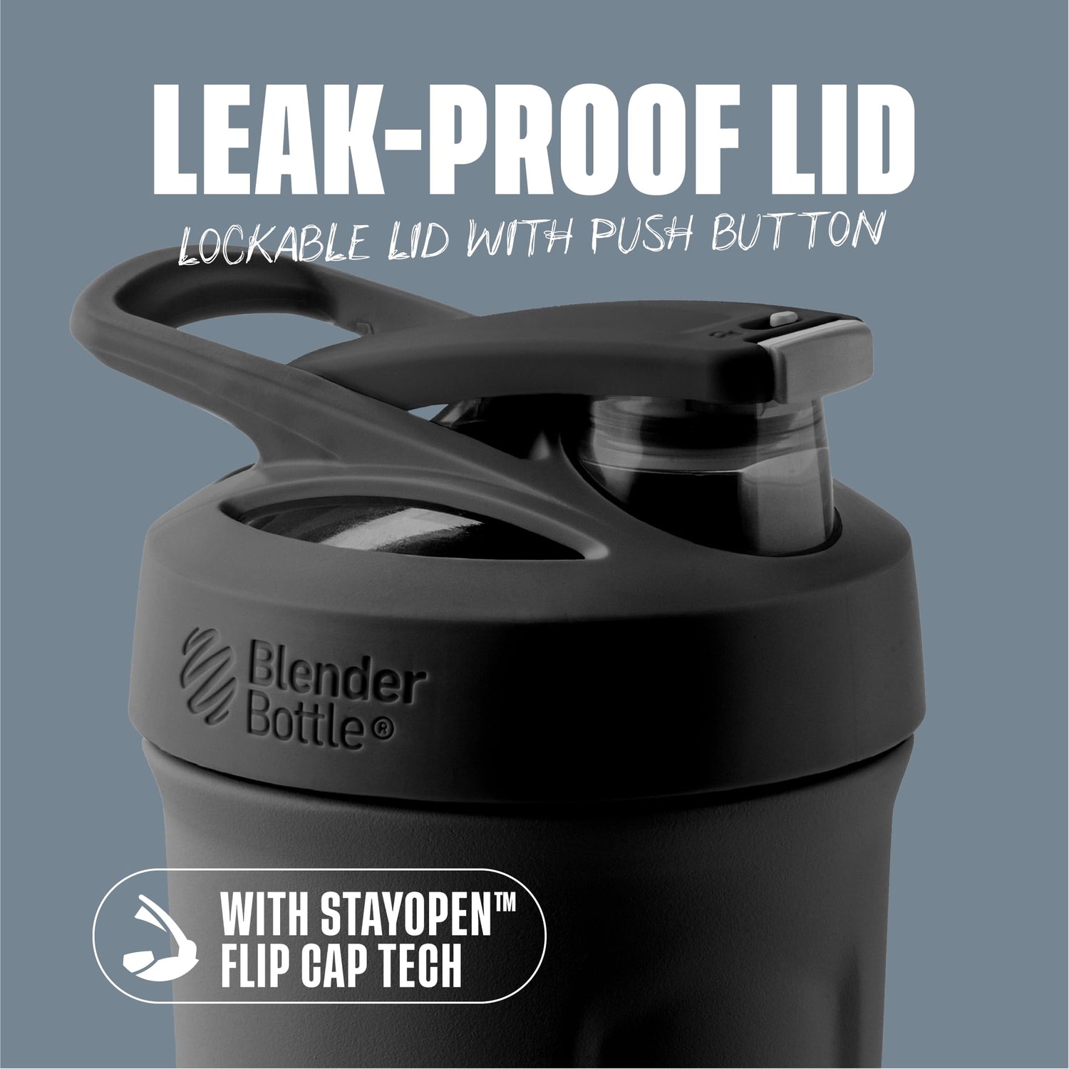 Details: The BlenderBottle Strada Stainless Steel push-button insulated protein shaker provides sleek style and ultimate ease. The bottle’s spill-proof locking lid opens and closes with the touch of a button. A flexible, ergonomic carry loop provides a comfortable hold. The patented mixing system utilizes the BlenderBall wire whisk to mix even the most stubborn protein powder, and a rounded base ensures a smooth blend. Double-wall insulated stainless steel keeps drinks cold for up to 24 hours. Measurement markings on the inside of the bottle add to the ease of creating perfect protein shakes. Leak proof; top-rack dishwasher safe; BPA and phthalate free. Manufacturer’s limited lifetime warranty.