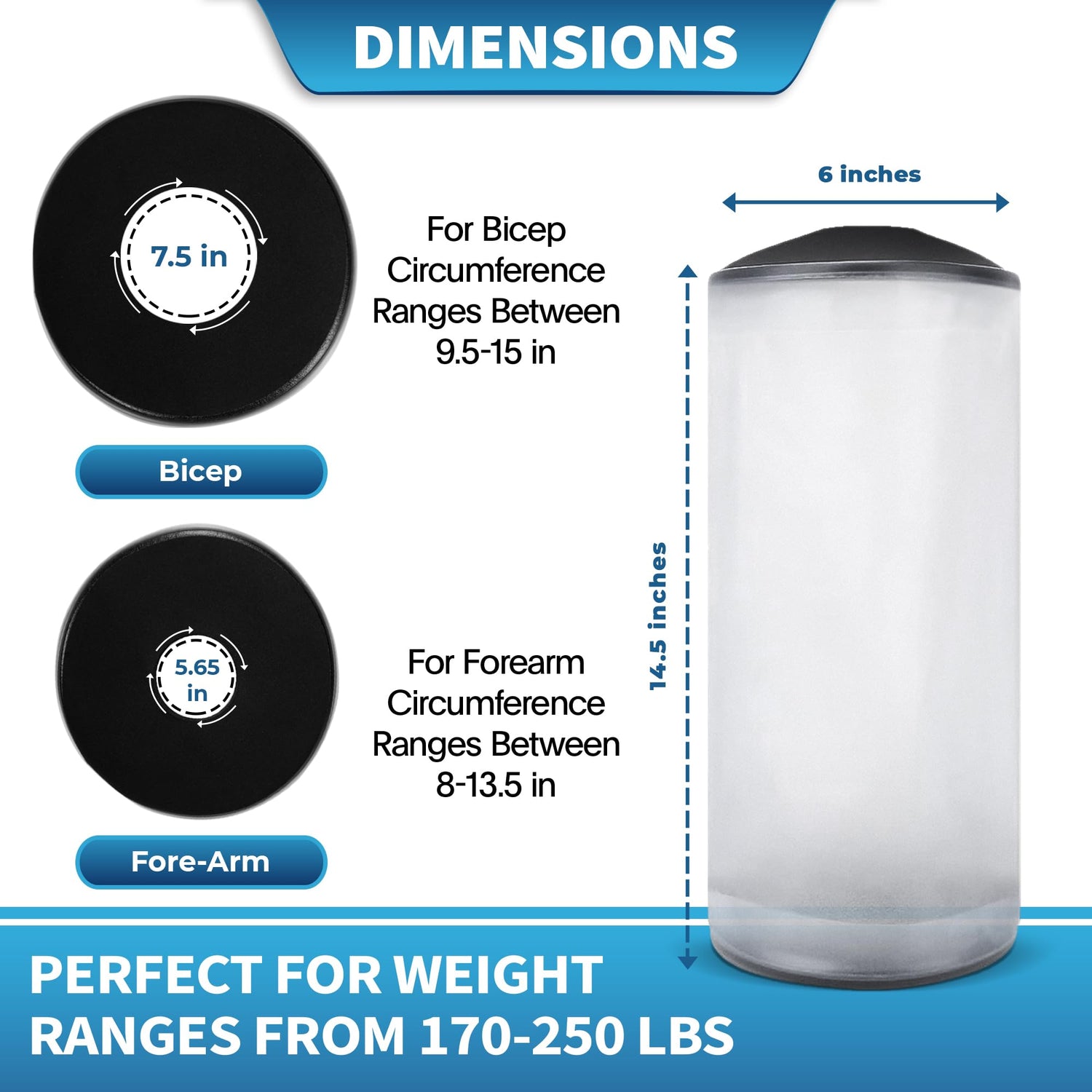 - DIMENSIONS: Tailored fit for your comfort, our arm cast protector for showers is available in L/XL size, perfect for weight ranges from 170-250 lbs, for bicep circumference ranges from 9.5-15 in, and forearm circumference ranges from 8-13.5 in. This size L/XL PICC line is a good choice for relaxed showers.