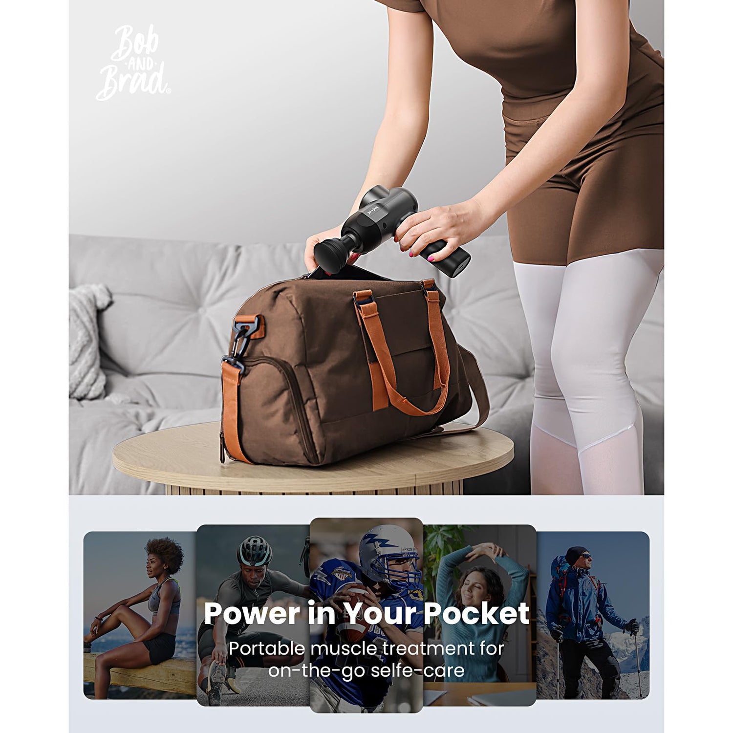 - Lightweight & Portable Design, Perfect Gifts - Bob and Brad C2 Max massage gun weighs just 1.5lbs/0.68KG, making it easy to carry anywhere and fit into any gym bag. Enhance portability with the included case. The ergonomic silicone handle ensures a comfortable grip, allowing you to carry the muscle massage gun with you and use it whenever needed.