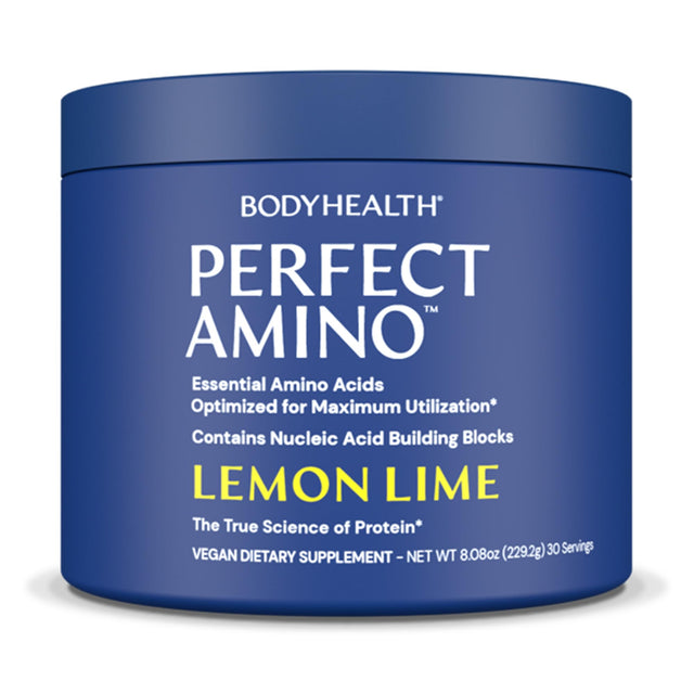 BodyHealth PerfectAmino Powder - BCAA and EAA Powder for Pre and Post Workout - Amino Acid Energy Drink for Men and Women to Support Lean Muscle and Recovery - Lemon Lime - 30 Servings