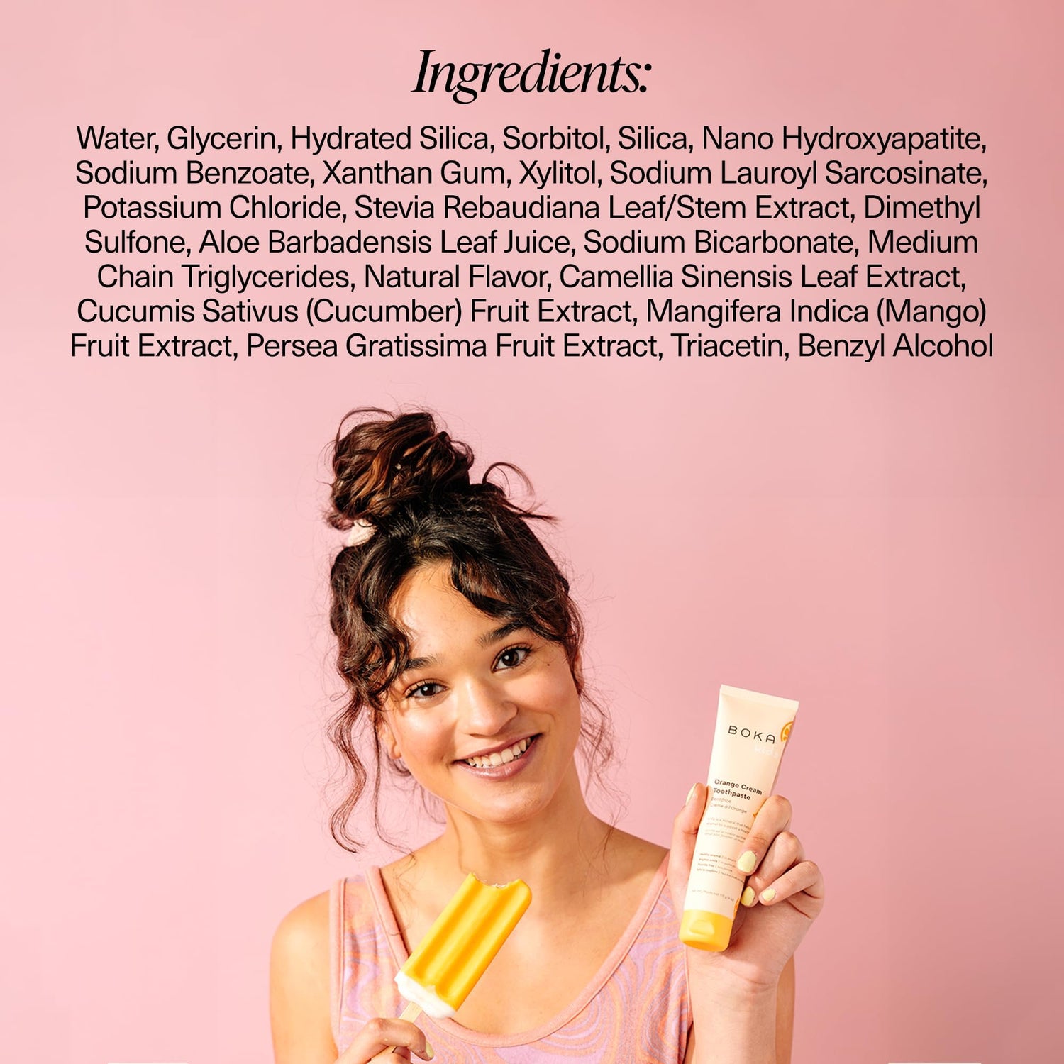 Boka Fluoride Free Toothpaste Nano Hydroxyapatite Toothpaste - Orange Cream Flavor, 4 oz 3Pk US Manufactured