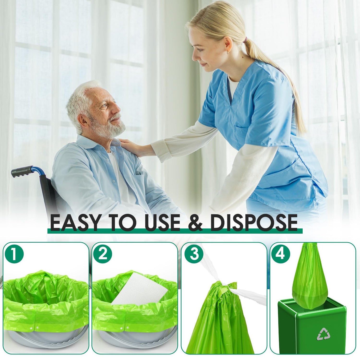 - 【VERSATILE DISPOSABLE COMMODE LINER】The potty chair liners disposable adult provide a convenient, clean solution for anyone who needs a beside commode chair, commode bucket, foldable bucket, portable toilet, potty chair, likes elderly parents, pregnant women, campers etc.. Having the bedpan liners, we never clean a commode pail again, no mess, no yuck any more. We also can use the commode poop bags with liners to dispose pet waste or light duty household garbage.