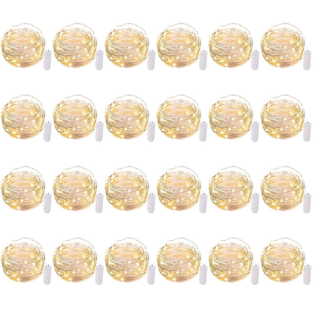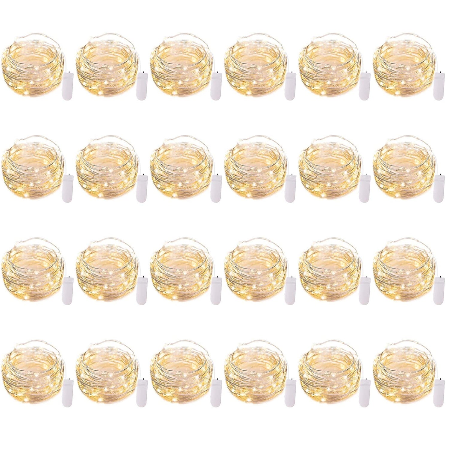 Brightown 24 Pack Fairy Lights Battery Operated - 7Ft 20 Led Mini String Lights Silver Wire Waterproof Firefly Starry DIY Lights for Bedroom Patio Wedding Party Christmas Decor (Warm White)
