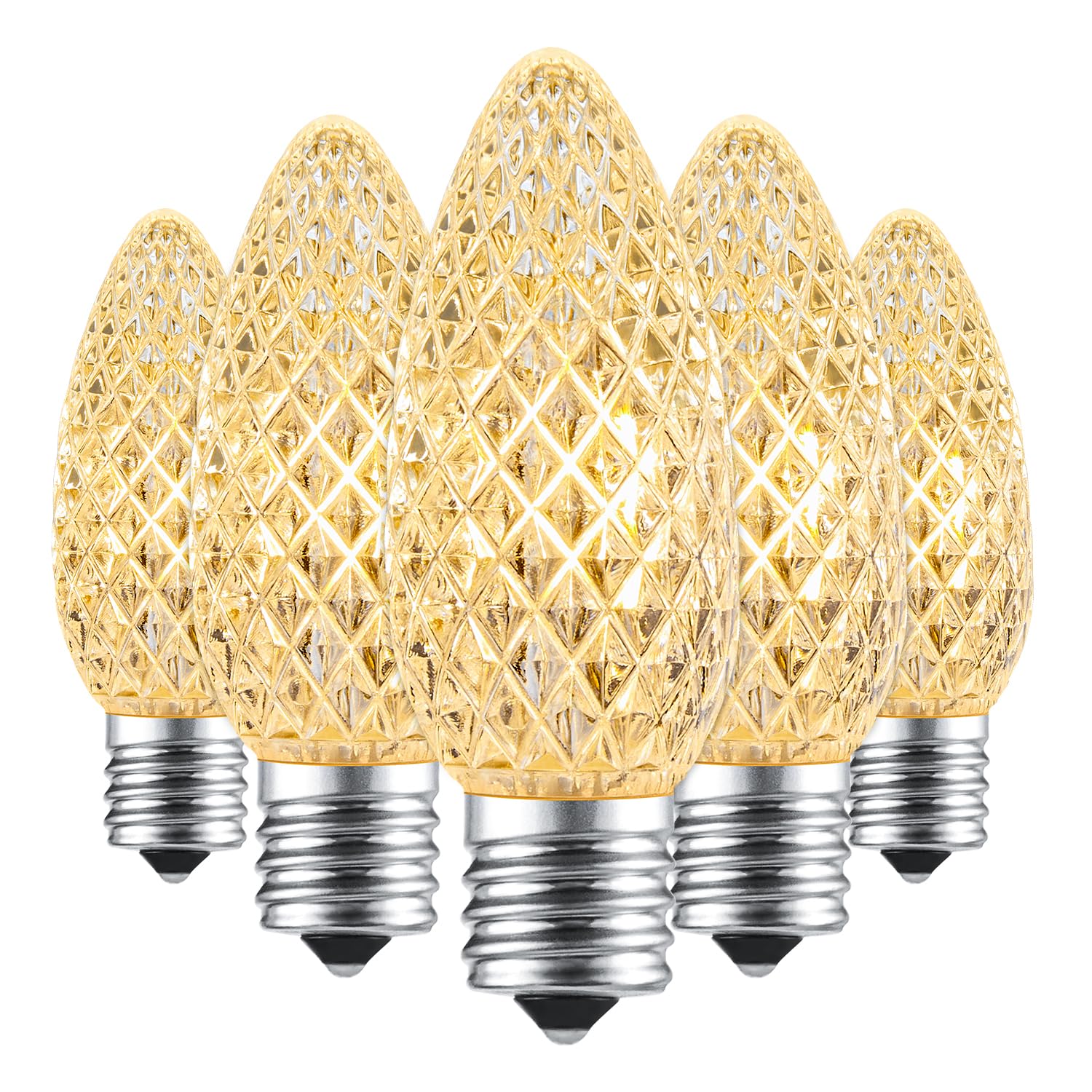- Energy Saving - Each LED C9 Christmas light bulb consumes only 0.8W, saving 90% energy compared to traditional incandescent bulbs and boasting a lifespan of up to 60,000 hours. Even after long time use, the LED Christmas bulb shell is still cool to the touch, ensuring you don't have to worry about damaging furniture, ornaments, or your Christmas tree.