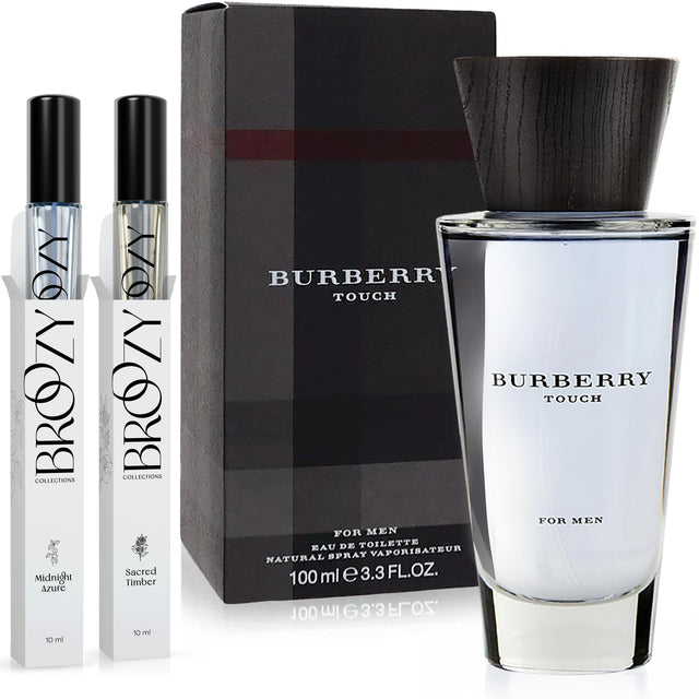 Broozy Collections - Men Cologne Set Bundle with 1 Full Size Burberry Touch Eau de Toilette (100 ml) and 2 Travel Size Mens Sample Cologne Bottles (10 ml) - Mens Cologne Gift Set, Men Gift Set Sampler