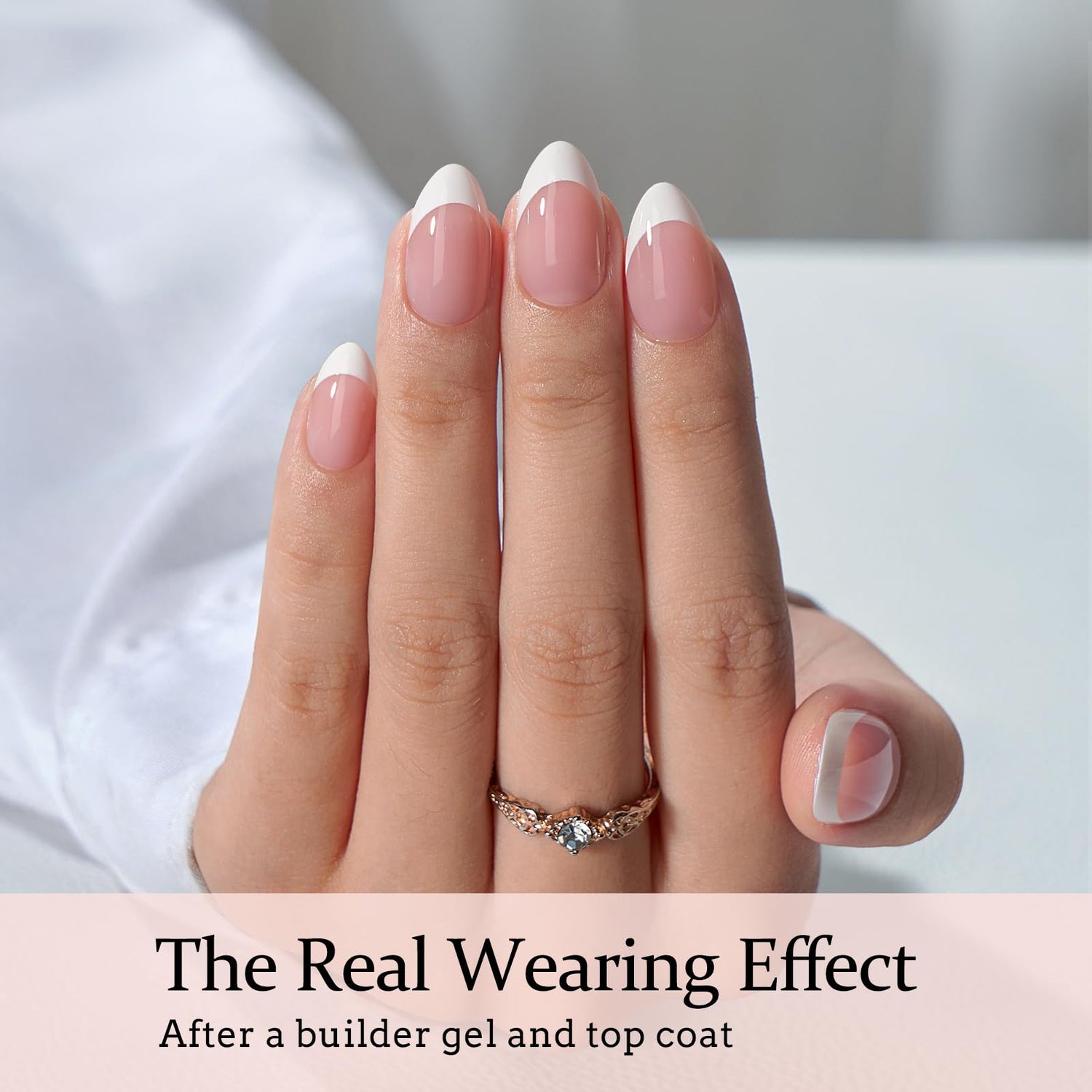 BTArtboxnails XCOATTIPS French Nail Tips - Short Almond Nail Tips with Nail Gel, French Protecing Duo, Nail Lamp, All in One Soft Gel French Tip Press on Nails Gel Extension Christmas Gift