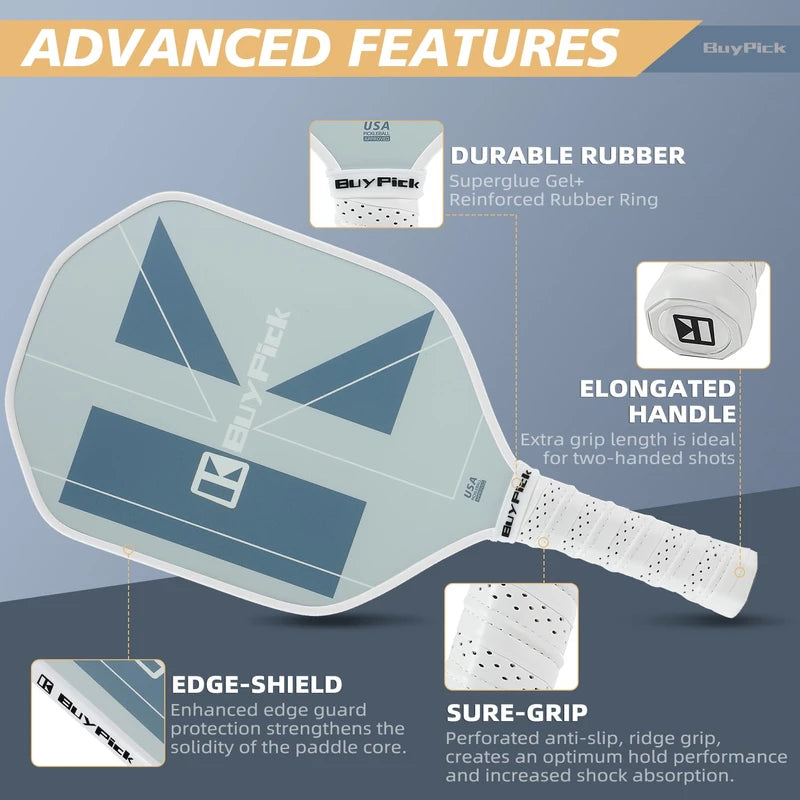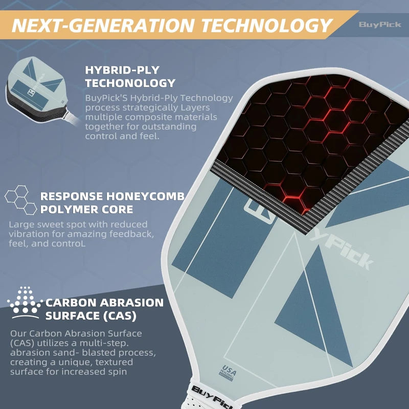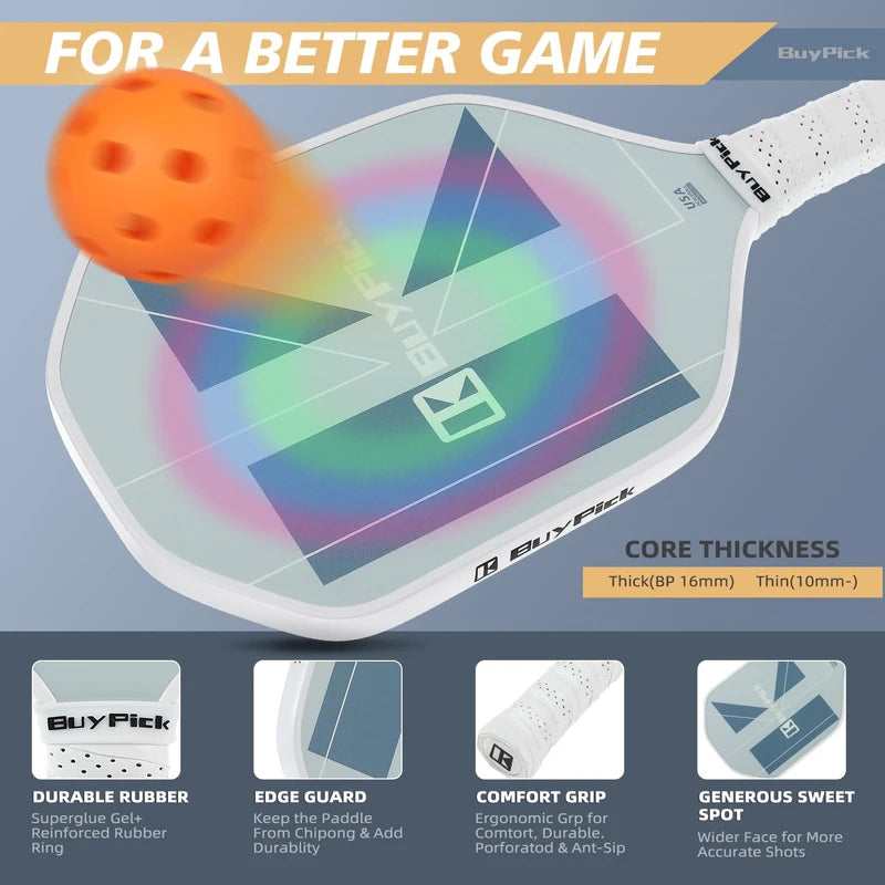 - 【High strength Carbon Fiber Surface】 BuyPick pickleball paddles made of exceptionally durable high-strength carbon fiber composite materials, compared to ordinary graphite surfaces and glass fibers, the texture on the surface of high-strength carbon fibers can generate small friction when in contact with the racket ball, providing huge energy for rotation.
