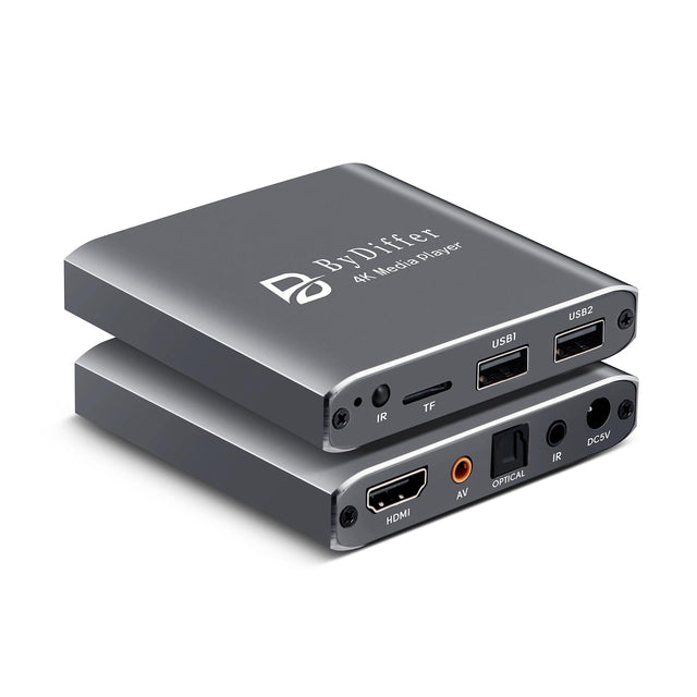 ByDiffer 4K Ultra HD Digital Media Player, TV MP4 Video Player for USB Drive/Micro SD Card, H.265/HEVC, Digital Signage, Auto Playback, HDMI/AV/Optical Output (Grey)
