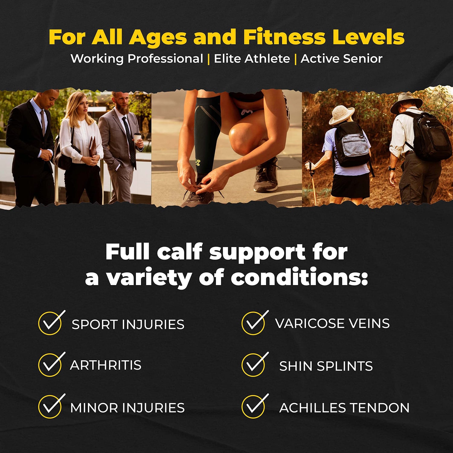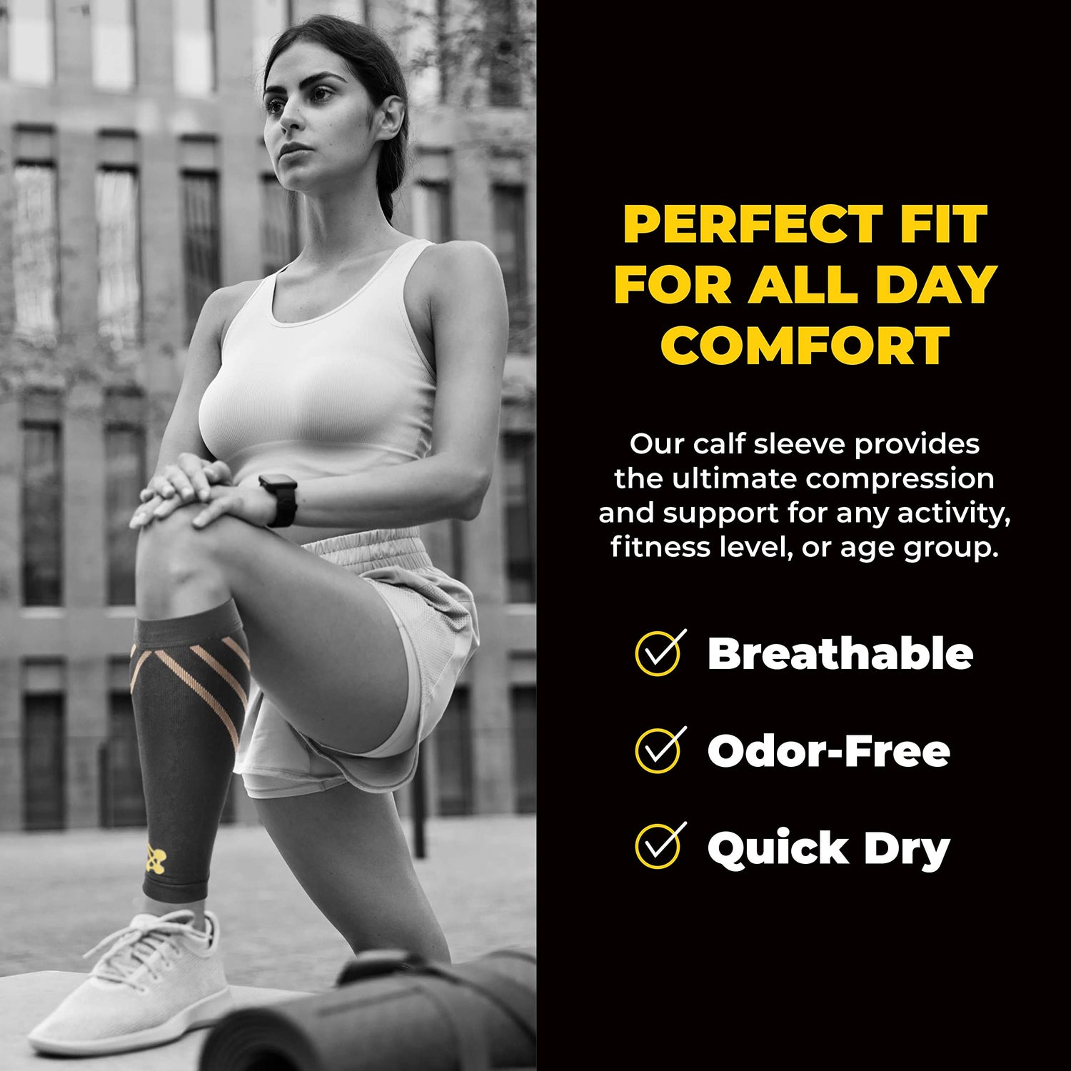 - SUITABLE FOR EVERY LIFESTYLE AND OCCUPATION – Whether you're a runner, a nurse, or someone on your feet all day, these calf sleeves for runners and athletes to provide support. Our compression for shin splints, calf tear compression sleeve, calf sleeve basketball, and compression for calf are ideal for managing calf muscle soreness, shin splints, or varicose veins. The copper wide compression calf sleeve and leg sleeves for women are loved by both women and men.