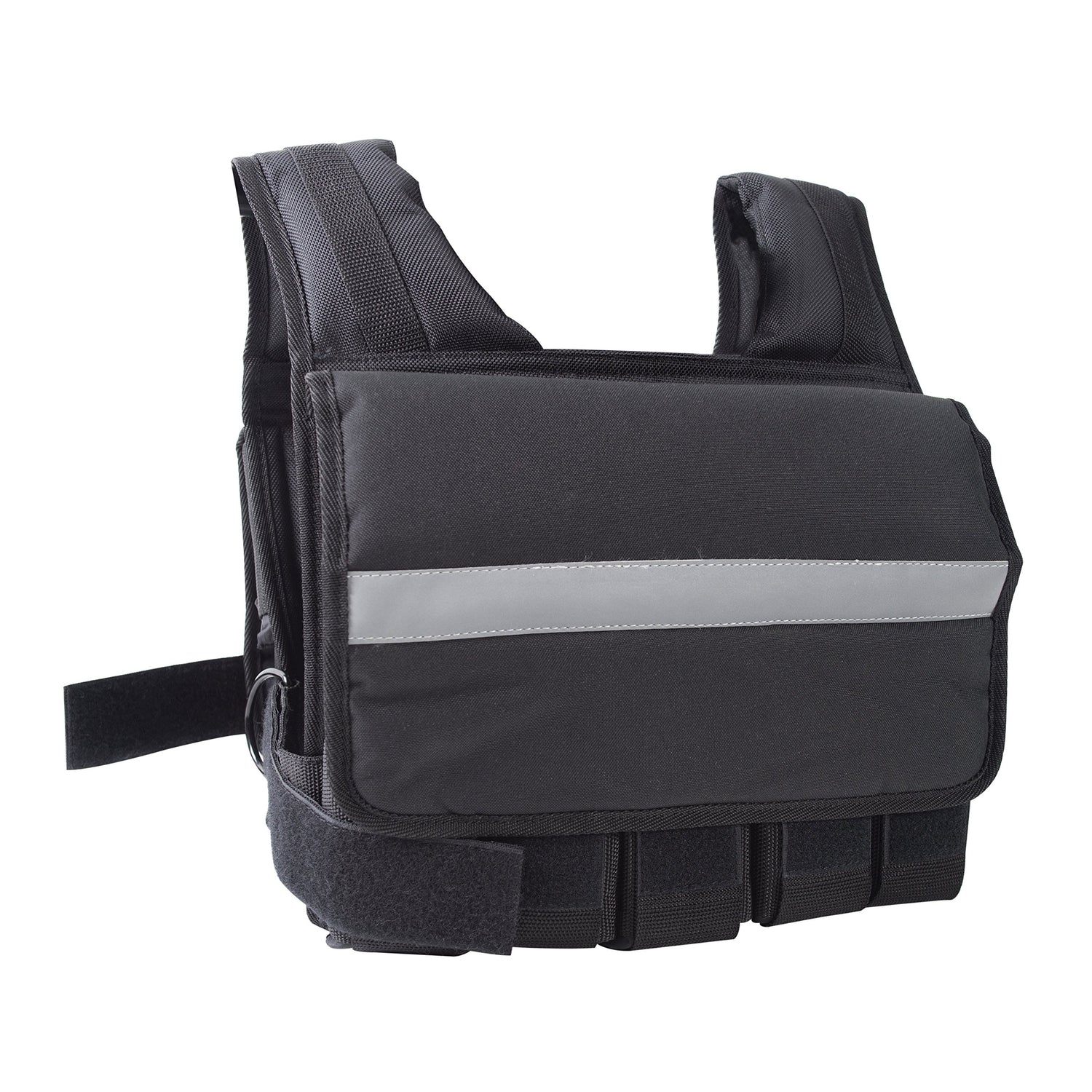 Details: Give your workout the extra edge it needs with CAP Barbell 20-pound short weighted vest. This weighted workout vest adds resistance to aerobic workouts or any body weight training. This vest features anchor hooks for parachute run training and includes reflective strips for easy visibility if used during walking or running. Adjust the total weight by simply adding or removing individual weight packets. Each packet is filled with 2.5 pounds of iron ore fines. The fully adjustable waist belt and padded shoulder straps allow for a snug and secure fit. This weight vest can be used by both men and women alike and is easily adjustable. The vest is MACHINE WASHABLE. Remove all weight packets before washing. Air dry. Do not use for water activities.