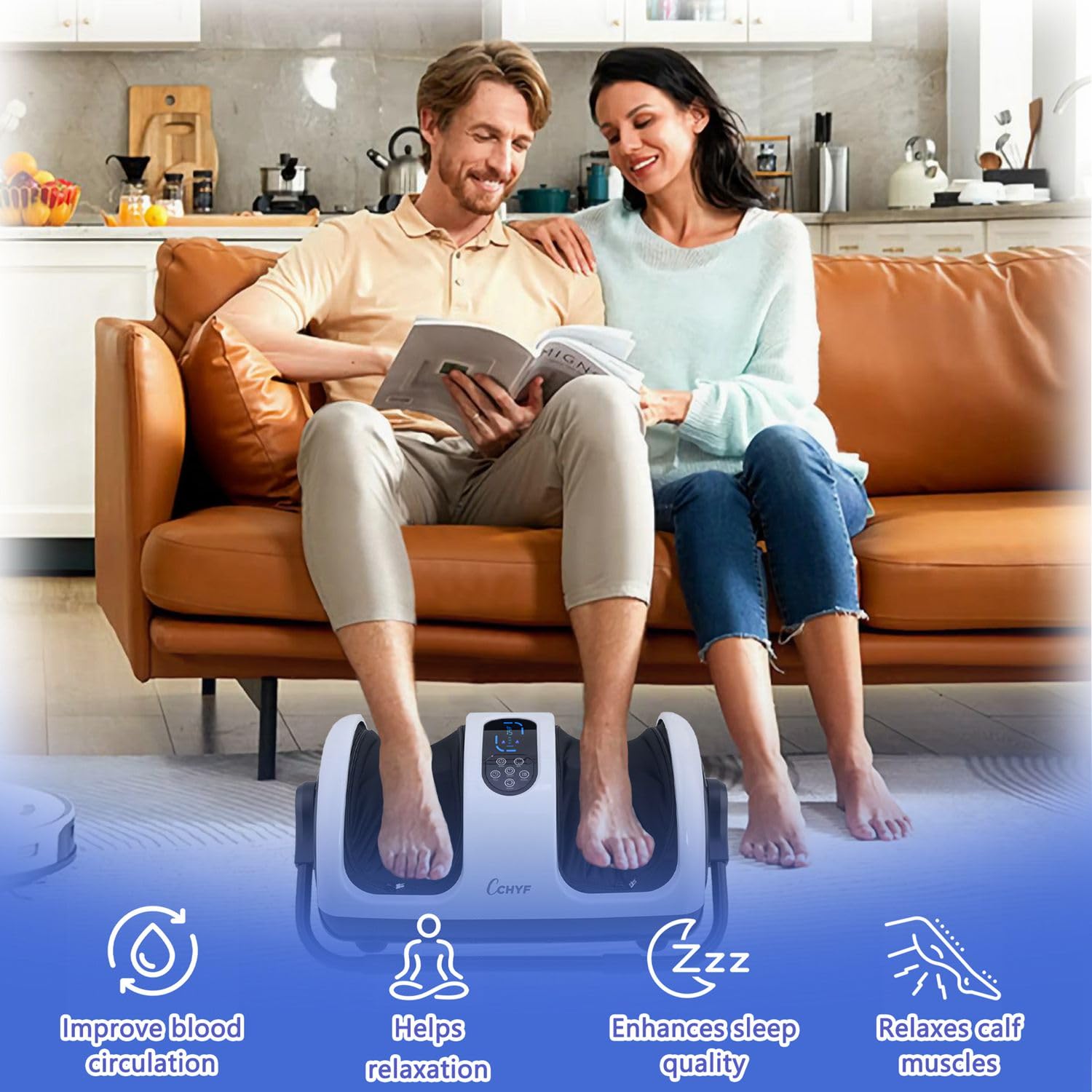 - 【Built-in Heat Therapy】This leg massager has a built-in adjustable heating system that can reach a maximum temperature of 125°F. Massage with heat therapy helps to accelerate blood circulation and relieve body fatigue, especially suitable for seniors who have edema in their legs and feet and have difficulty moving when it's cold.