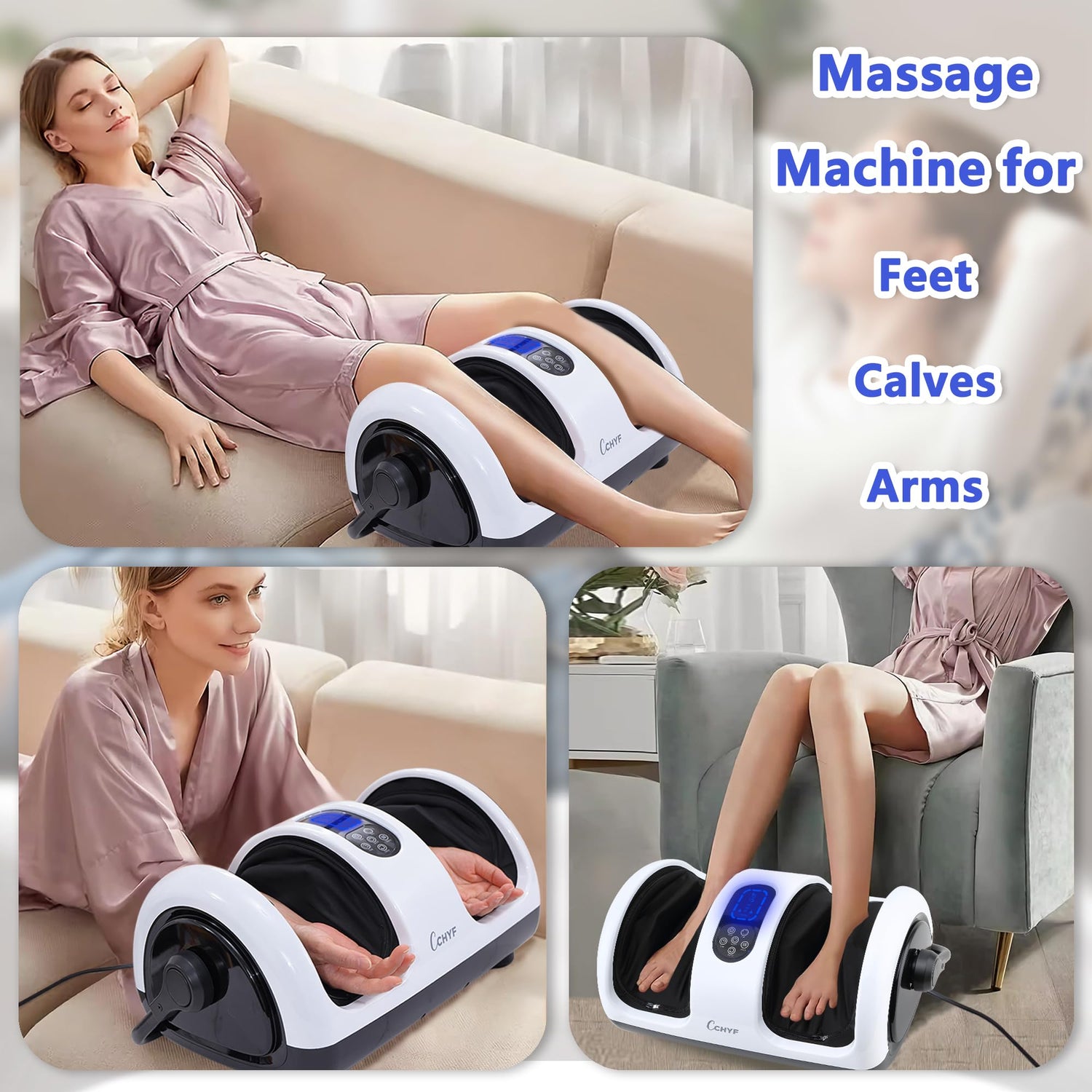 - 【360° Adjustable Handle】CCHYF shiatsu foot massager can provide a deep massage to your feet or calves at a comfortable angle thanks to the 360° adjustable support bar, just press the buckle on both sides to easily adjust the angle of the massager to massage your feet, calves, arms or ankles as needed.