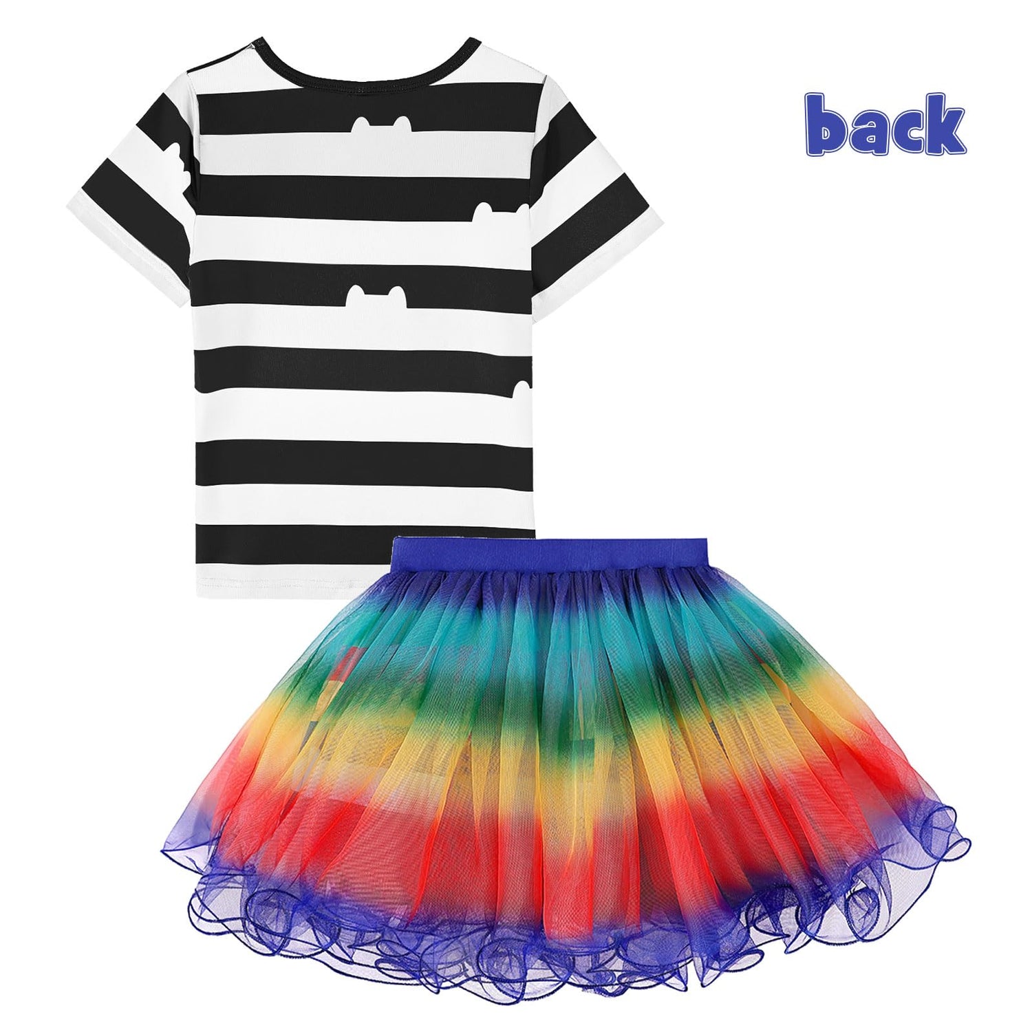 - This Tutu Dress for Girls is made of layer of sheer shimmer yarn, with rainbow lining, dress waist with elastic waistband.Girls Classic stripe tee design of short sleeve crew neck, soft and comfortable.The two-piece style is easy to put on/off, perfect for casual weekday wear as well as for stage performances.