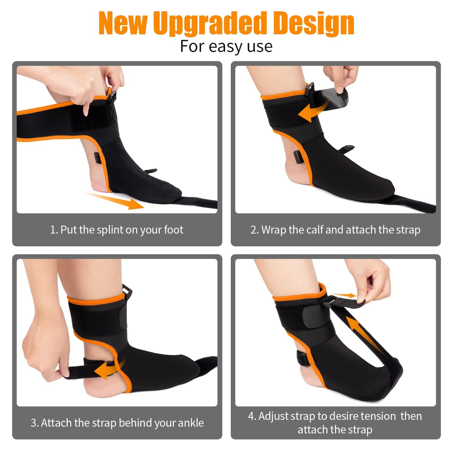 - CUSTOMIZABLE SIZING & EASY TO USE: Easily find the perfect fit with our sizing chart (see the 4th image above). Our soft plantar fasciitis night sock can be comfortably worn on your right or left foot. It's very easy to use, no need to bend the aluminium bar like other plantar fasciitis night splint, simply put the sock on the foot, attach the calf strap, ankle stap and dorsiflexion strap.