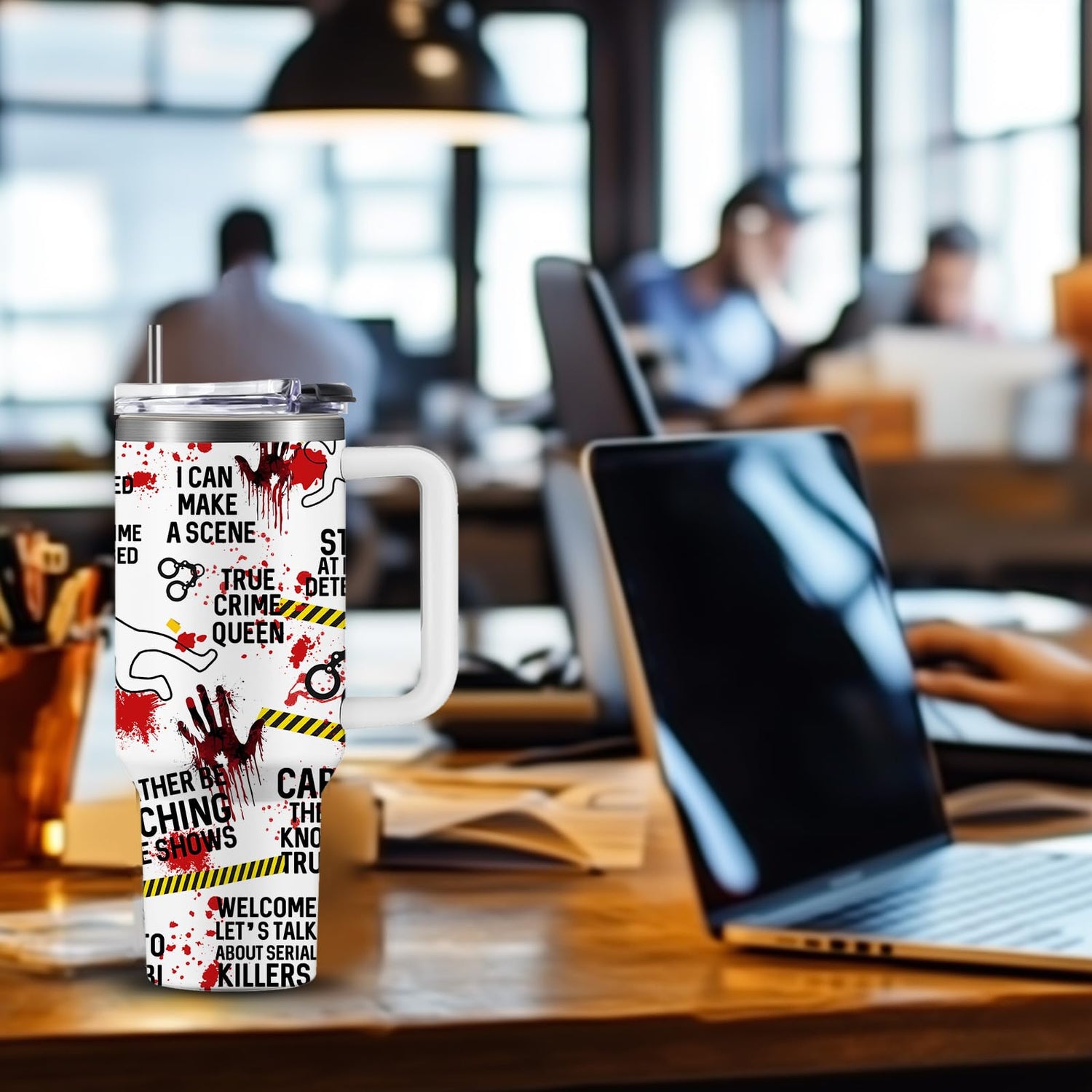 - 【A TUMBLER THAT SPEAKS YOUR TRUE CRIME LANGUAGE!】 Designed for the ultimate true crime fan! This mug features bleeding palm prints, shattered glass, and caution tape details - a perfect, dark-humored tribute to your love for crime scenes, mystery podcasts, and detective shows. It’s more than a cup; it’s a badge of honor.