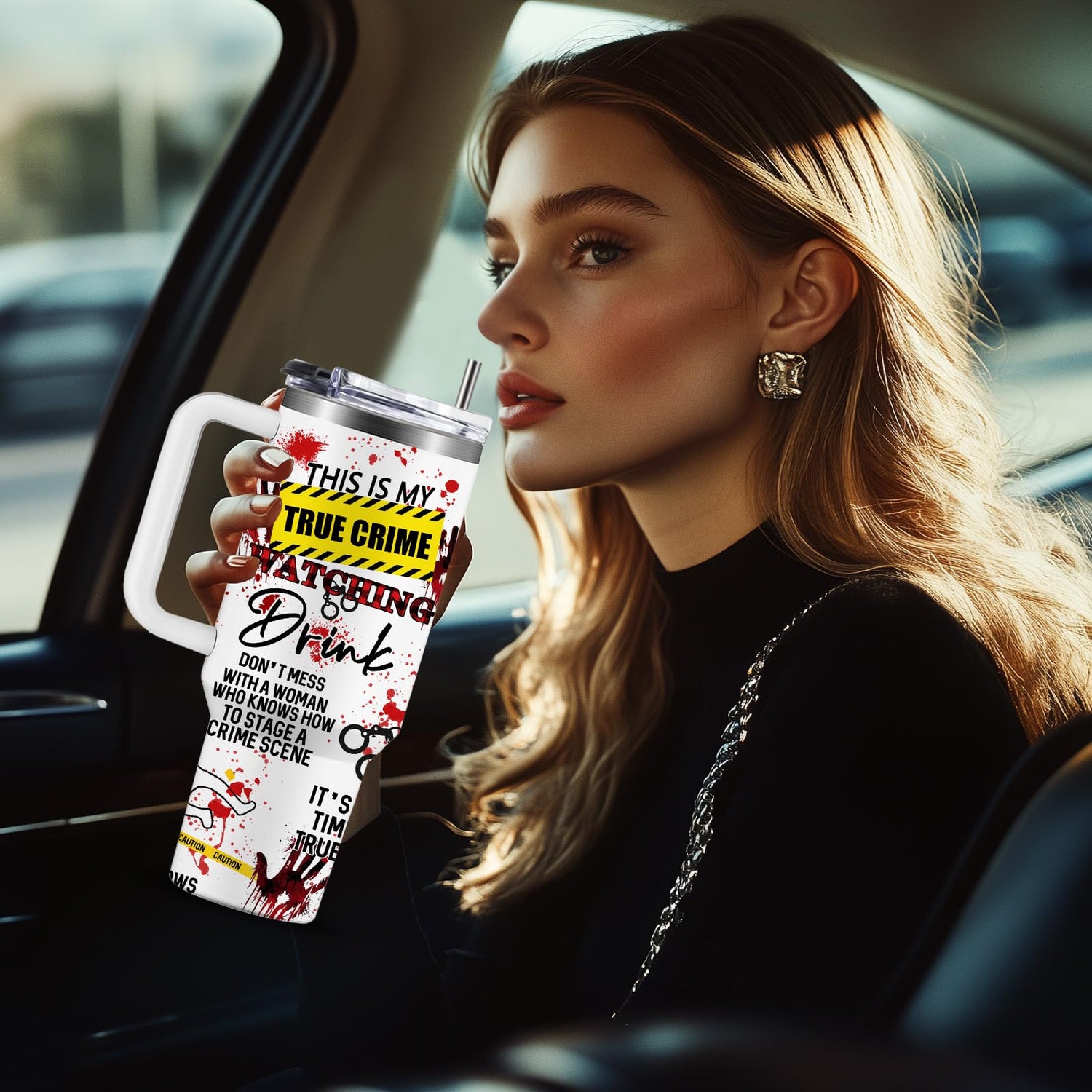 CGMIBAS True Crime Gifts for Women Men - 40oz Funny Crime Scene Tumbler, Stainless Steel Travel Mug for Horror Podcast Fans, Crime Junkie Merch, Christmas Birthday Detective Lover Gift