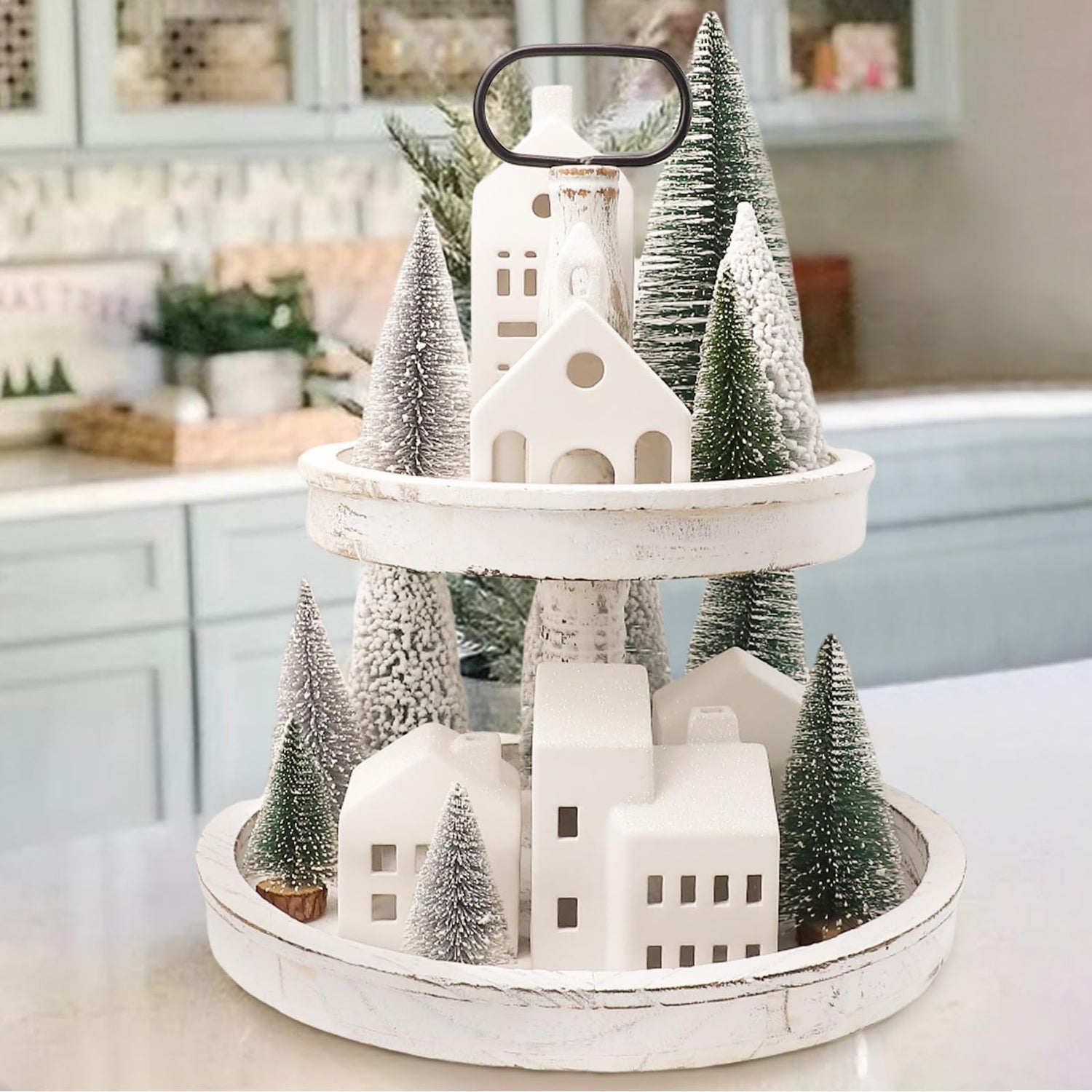 - Charming Miniature Christmas Village - Transform your home into a winter wonderland with our lighted white Christmas village houses and mini Xmas trees, creating a magical scene reminiscent of a snowy Christmas Eve.