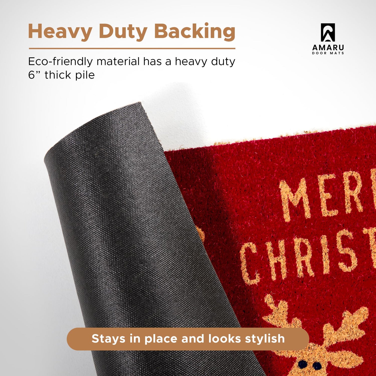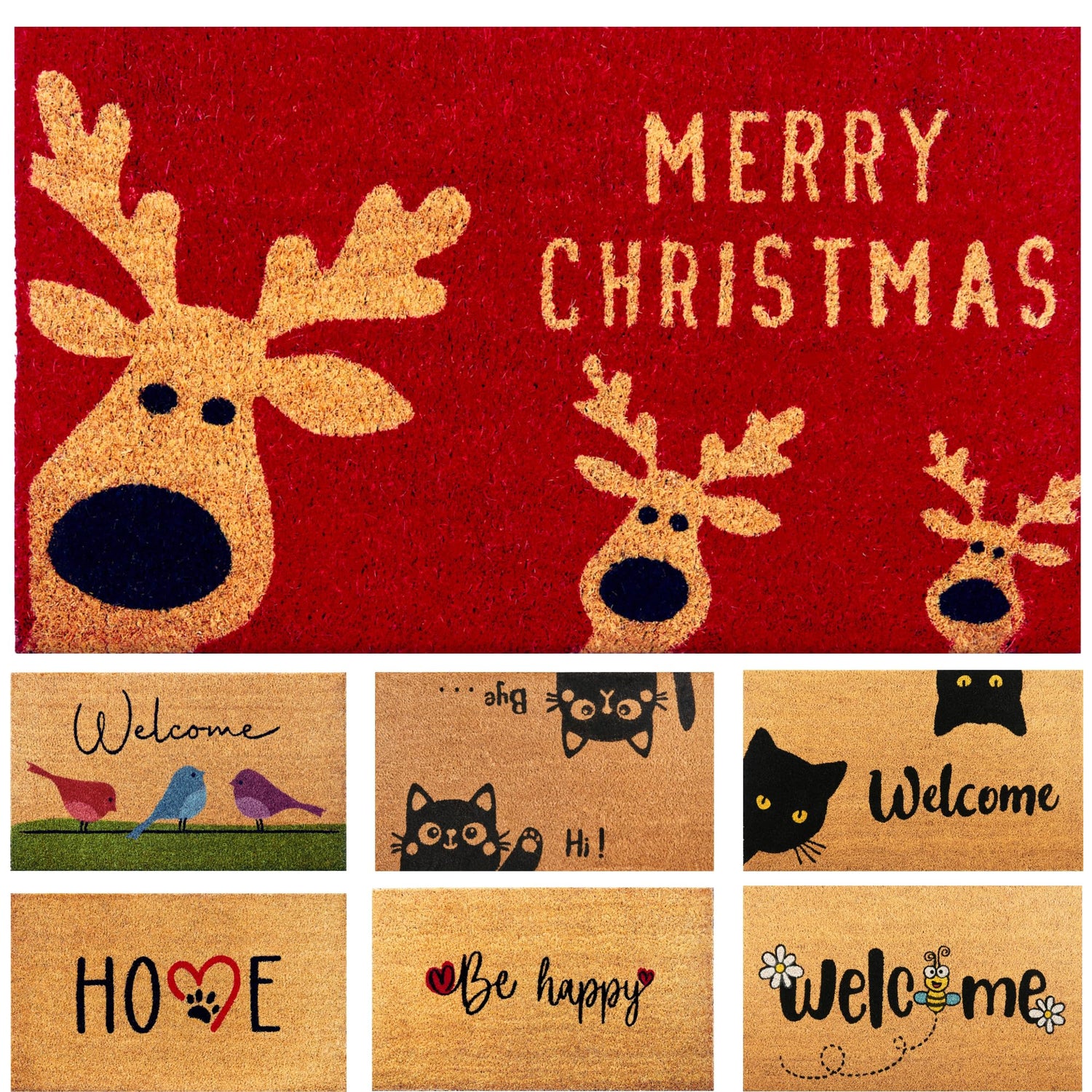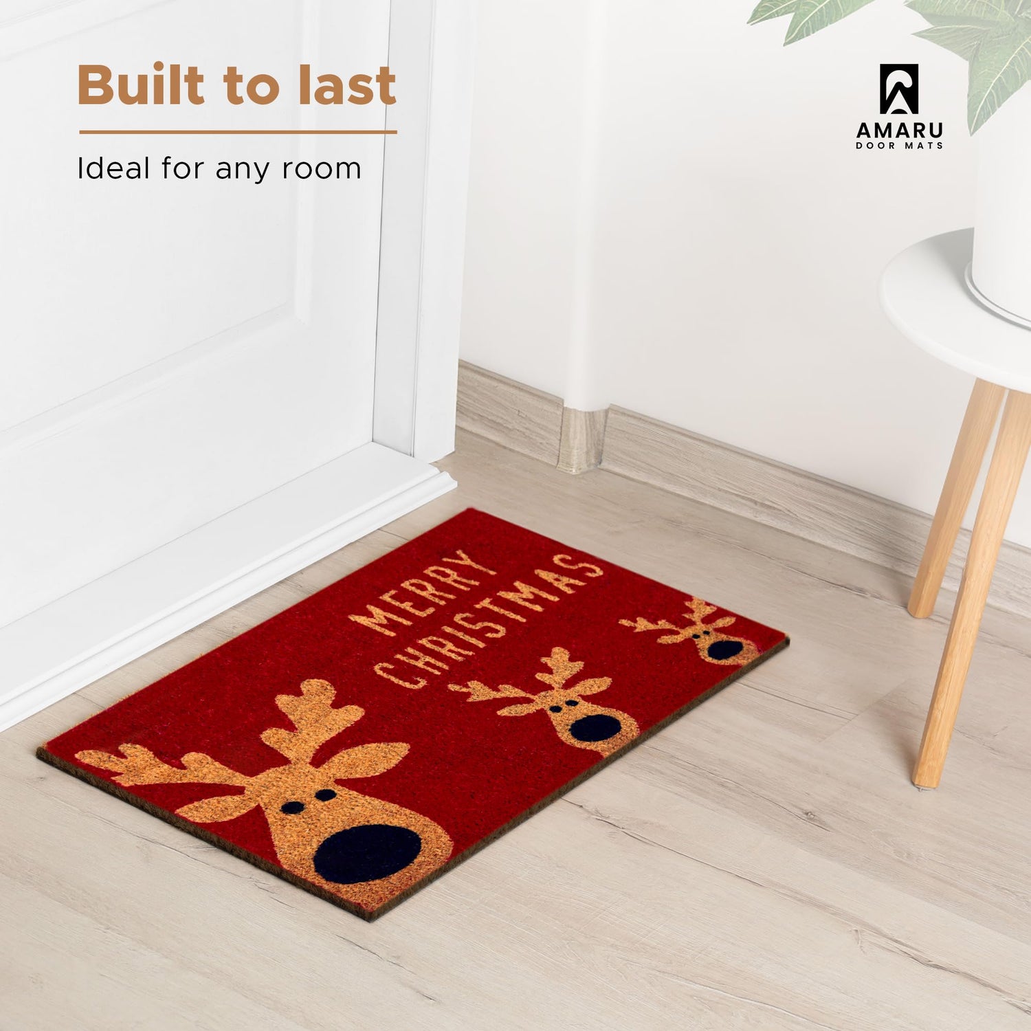 Christmas Reindeer - 17"x29" - Coir Door Mat with Heavy Duty Backing - Welcome Mats for Entryway, Porch - Anti-Slip PVC & Coconut Fiber Surface - Natural Home Accessories, Minimalist Original Design