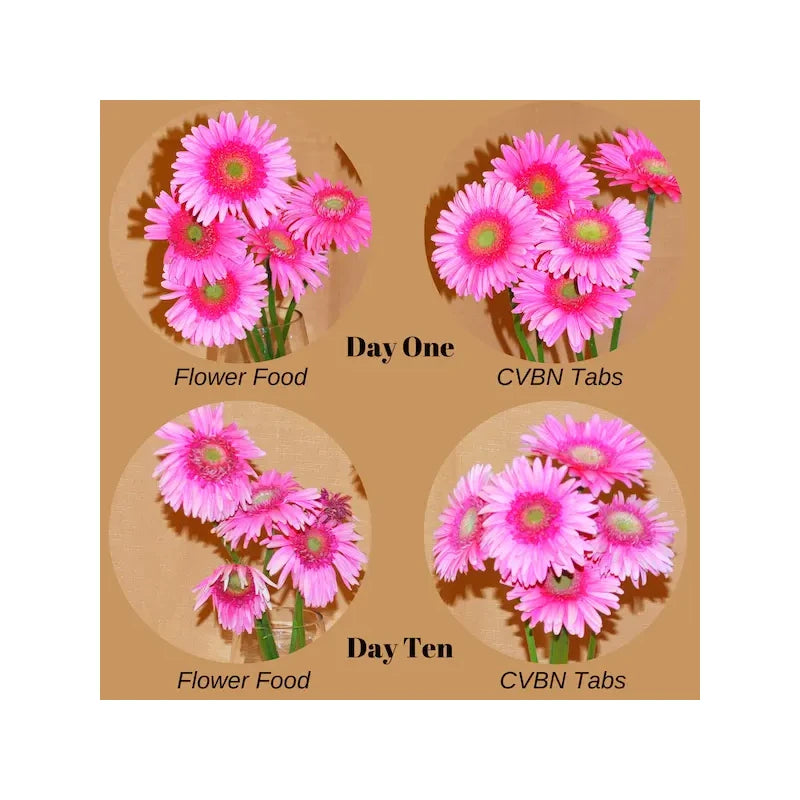 Chrysal CVBN is a conditioner for cut flowers to be used by growers, bouquet makers or florists. It is an easy-to-use stable tablet that dissolves quickly and produces clear and odorless water. Chrysal CVBN is not harmful to flowers and maintains a good quality of leaves and flowers. Another important effect is that Chrysal CVBN neutralizes the damaging effect of daffodil slime in mixed bouquets. Available in a pot of 800 tablets. Suitable for all water types. Use preferably tap water. Can be dosed automatically and manually. Effects: Reduces waste. Maintains a good quality of leaves and flowers. Neutralizes the harmful Narcissus slime in mixed bouquets with daffodils. More effective than other chlorine products. Less risk of damage. Dissolves quickly and clear in water.