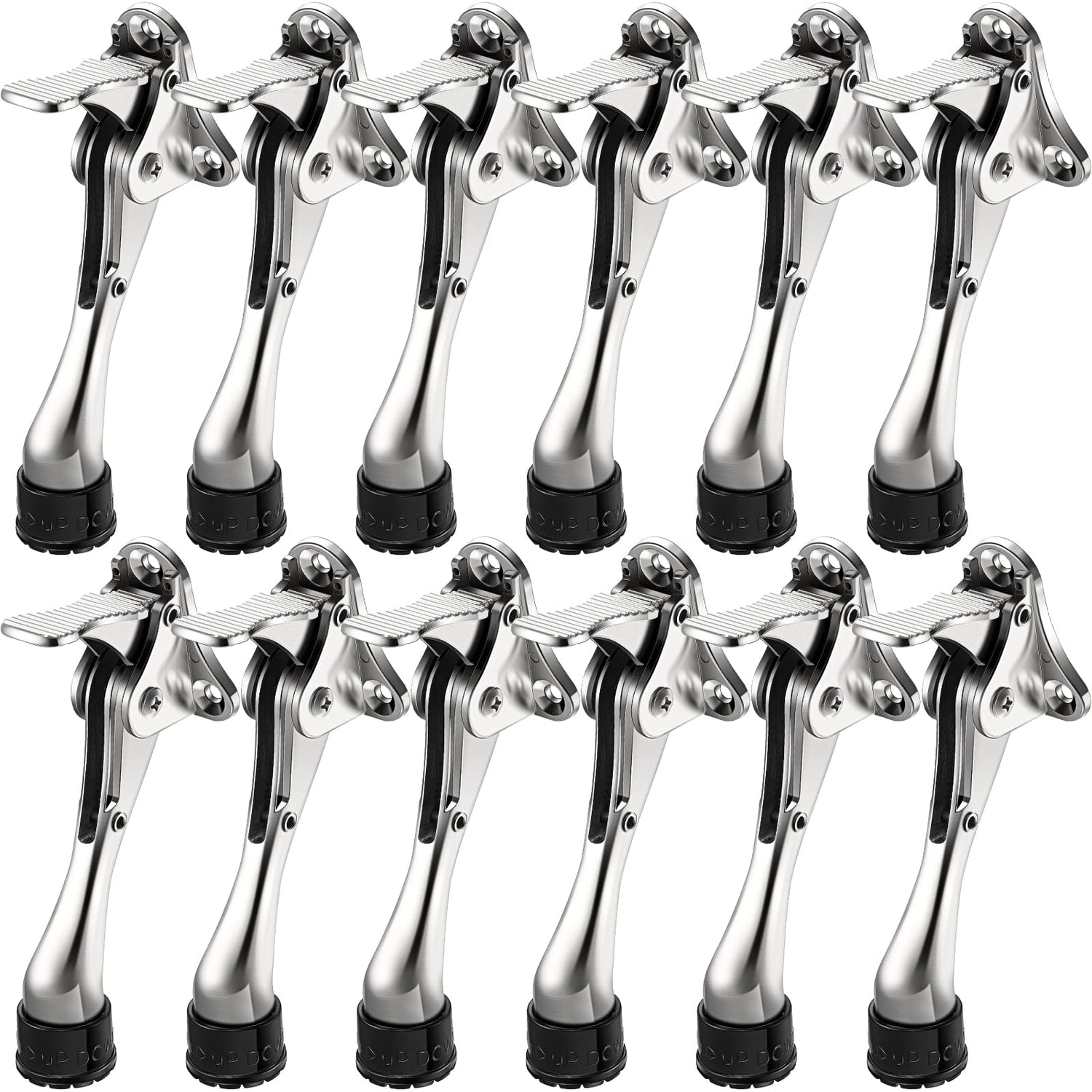 Chumia 12 Pieces Heavy Duty Door Stoppers 5.35 Inches Kickdown Adjustable Kick Down Door Stop for Bottom Easy Pedal with Rubber Tips Commercial(Silver)
