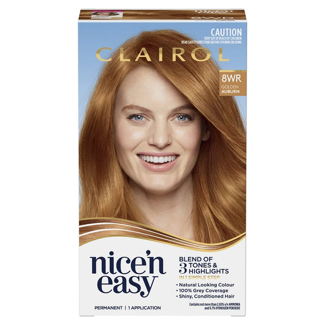 Clairol Nice 'N Easy Permanent Hair Colour 8WR Natural Golden Auburn, 100% Grey Coverage, Natural Looking Hair Colour