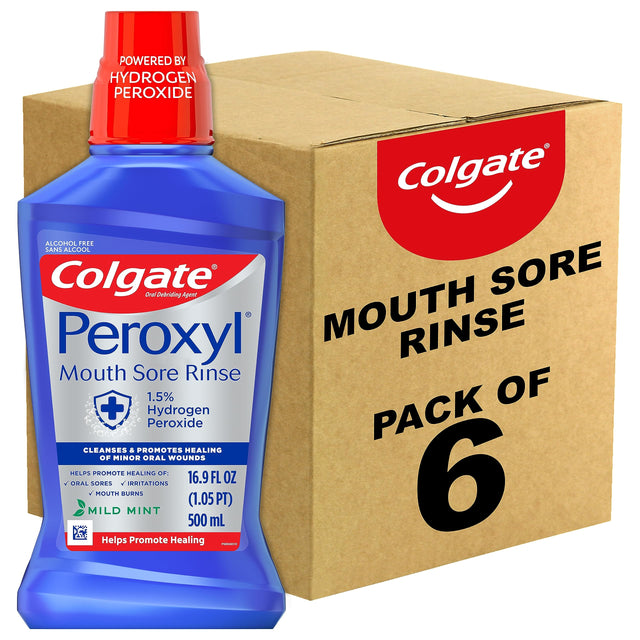 Colgate Peroxyl Antiseptic Mouthwash and Mouth Sore Rinse, 1.5% Hydrogen Peroxide, Mild Mint - 500ml, 16.9 Fluid Ounces (Pack of 6)