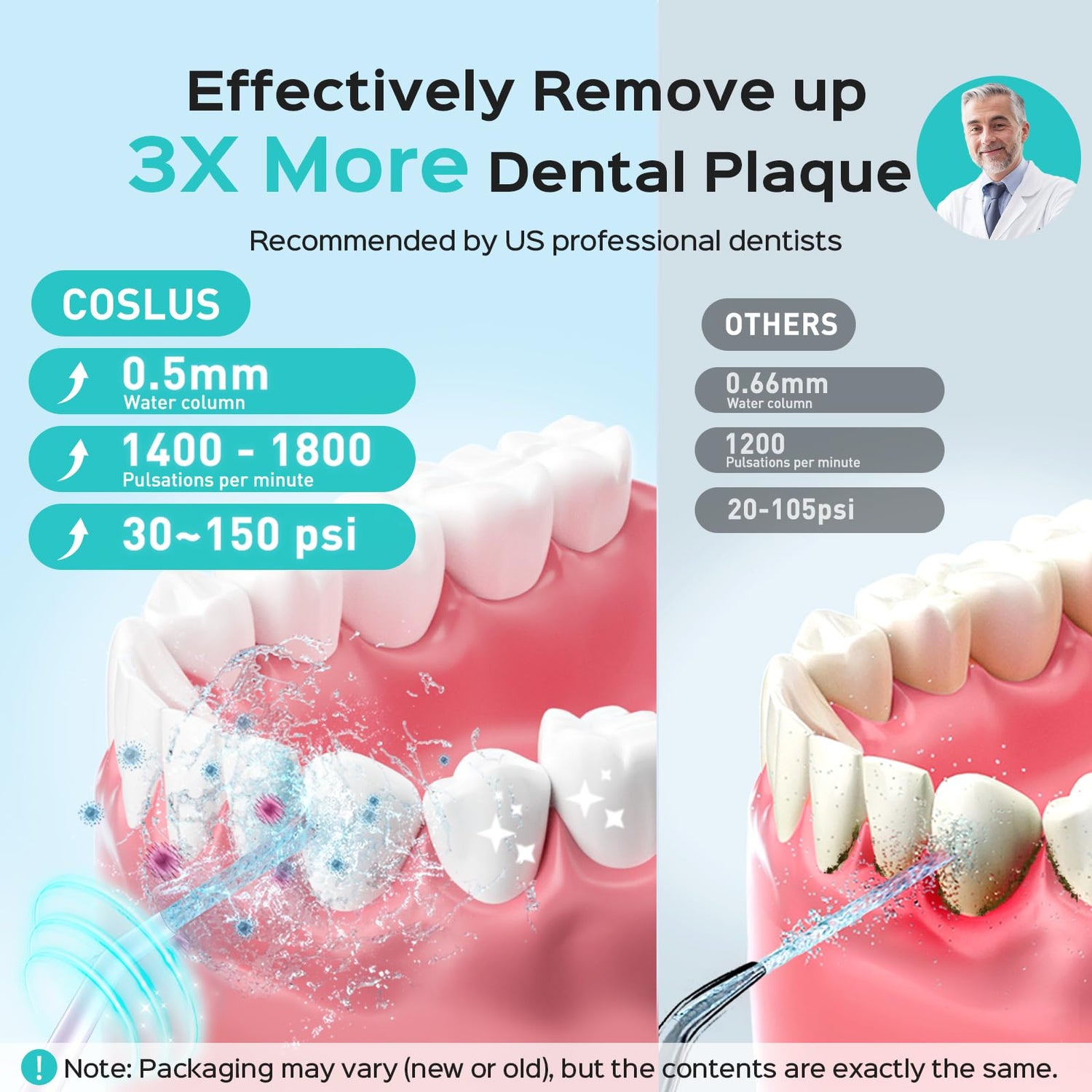 - Gentle Oral Care with Precision Clean: Cordless portable water dental flosser pick endorsed by American dentist experts, the wireless flosser can offer 1400-1800/min ultra-fine dual-flow technology and 30-150 psi customizable water pressure for dental plaque removal. Gentle for gums flosser with 4 multi-functional nozzles, easily removes food debris trapped between braces, meanwhile meets the comprehensive oral care of teeth, gums and tongue can effectively solve and prevent various oral problems