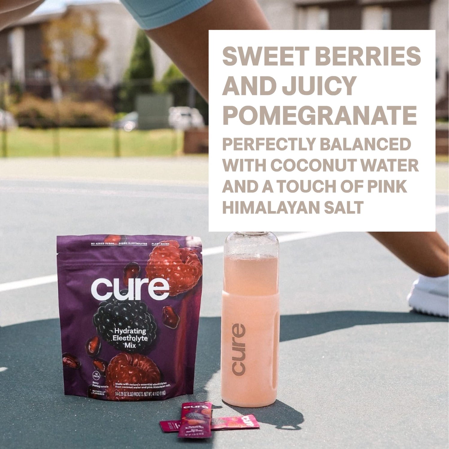 Cure Hydration | Plant-Based Electrolyte Drink Mix | No Added Sugar | FSA & HSA | Dehydration Relief Powder Made with Coconut Water | Non-GMO | Vegan | Pouch of 14 Packets - Berry Pomegranate