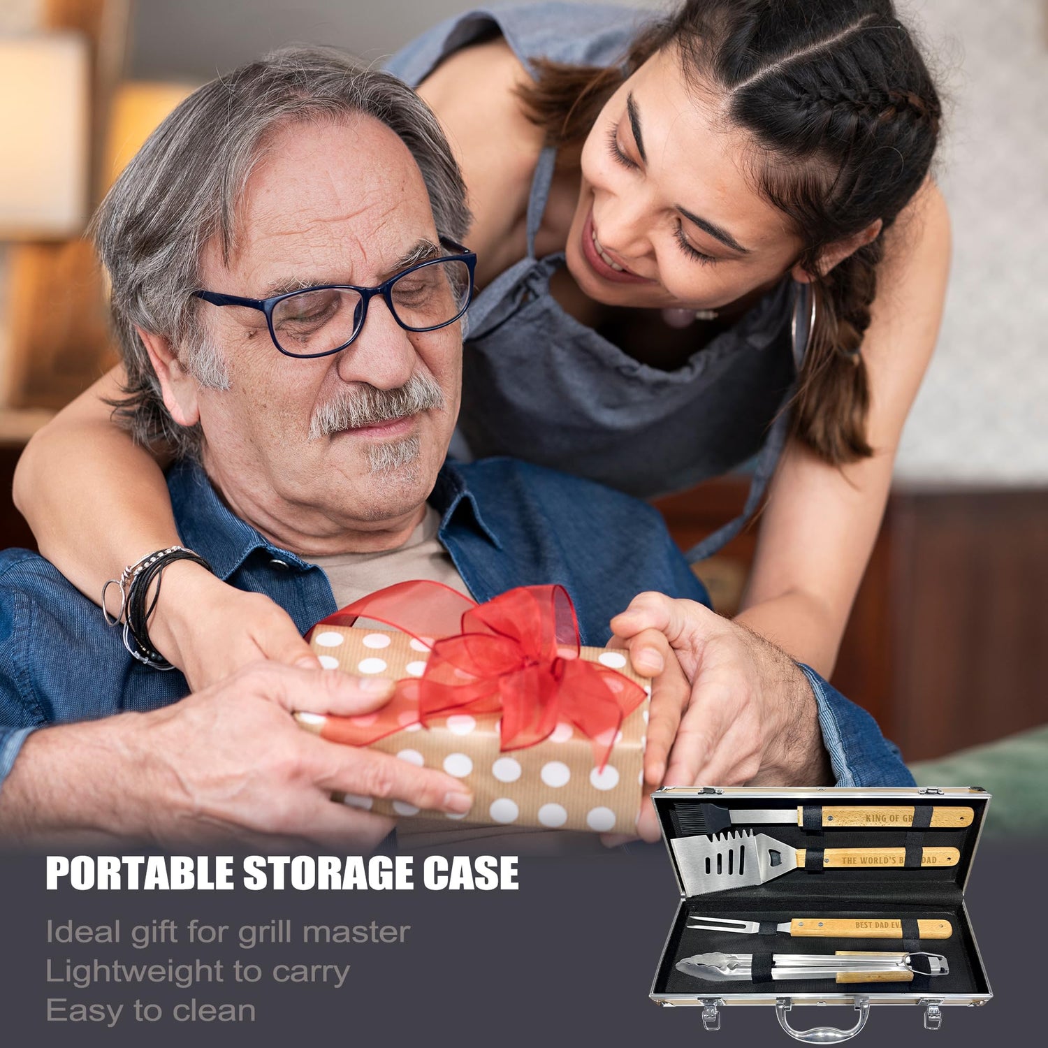- The Perfect BBQ Gift for Dad: Dad will fall in love with this shiny stainless steel BBQ tool set at first sight. Give this luxurious BBQ tool set as a gift to Dad on Father's Day, Valentine's Day, Christmas, birthdays, or any other special occasion, and see the happy smile light up his face. This boxed BBQ tool set is also an excellent gift for Dad, husband, or grandpa, suitable for camping, picnics, backyard, or home use.