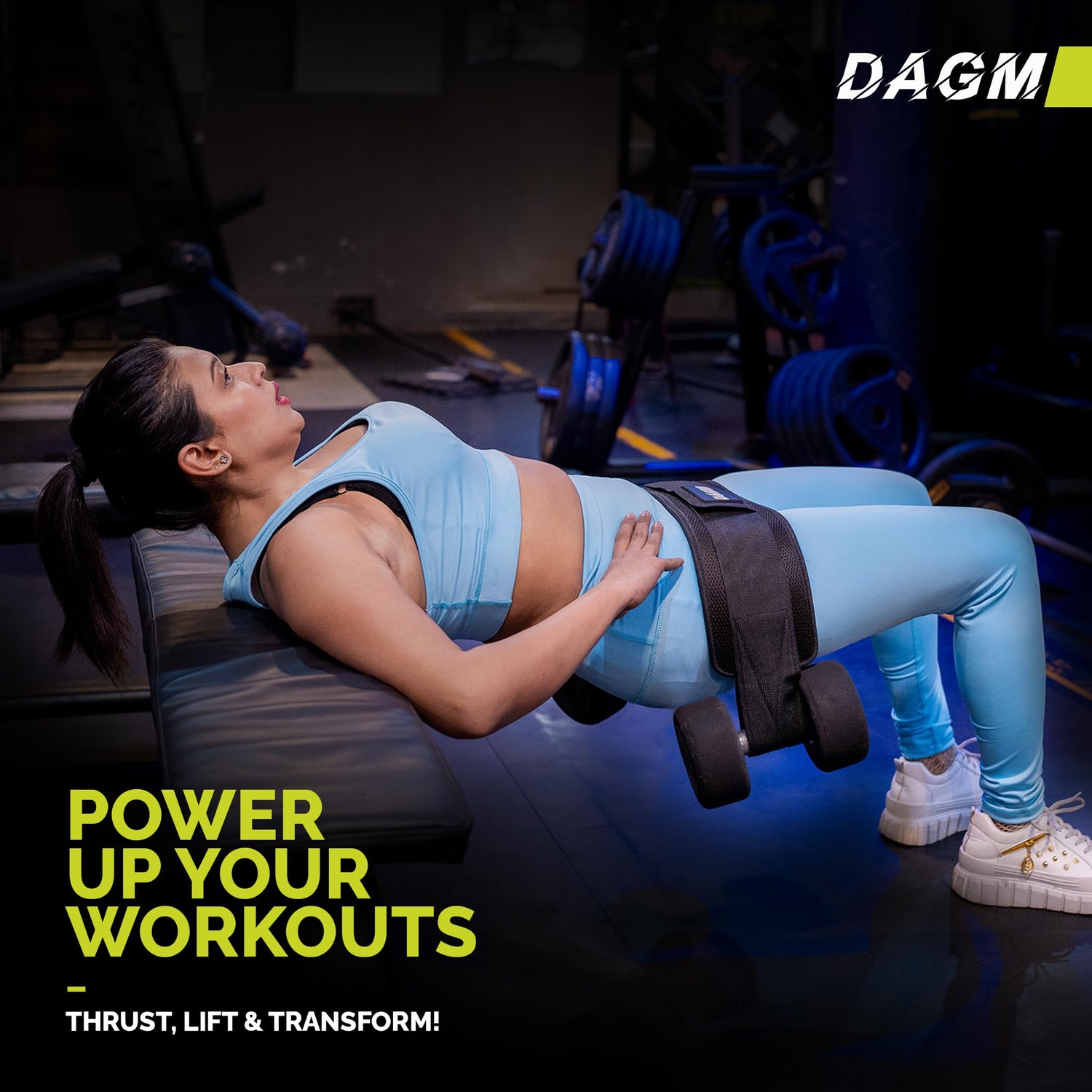- Do Hip Thrusts Anywhere, Anytime - Our DAGM Belt makes it easy to do hip thrust exercises at home, the gym, or anywhere else. It works for beginners and pros alike, handling weights up to 500 lbs, including kettlebells, dumbbells, Plates and more.
