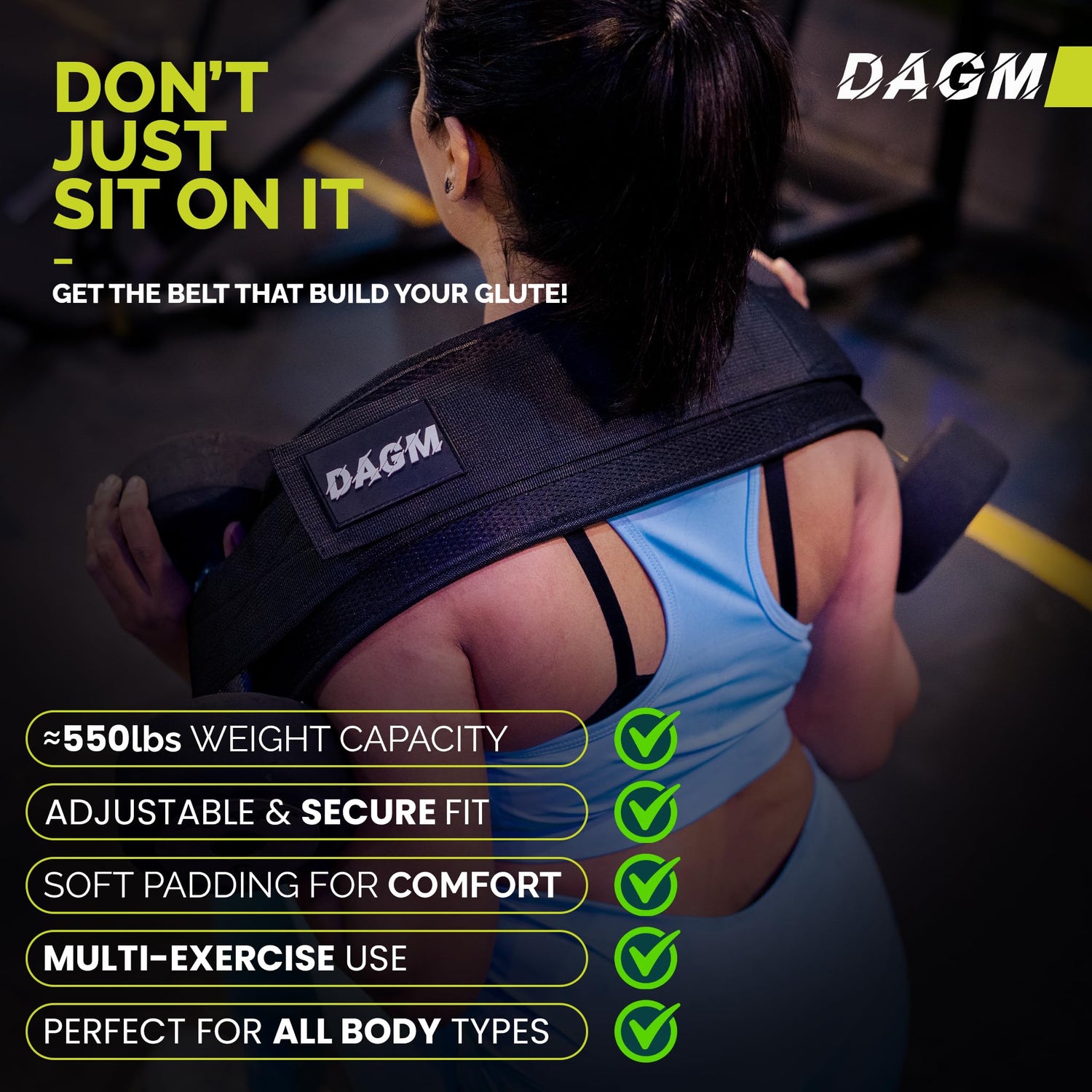 - More Exercises, More Fun - With our DAGM Belt, you can do lots of different exercises, not just hip thrusts. Add weights like kettlebells, Plates and dumbbells to make your workouts tougher and target different muscles. The perfect hip thrust gym equipment for all your needs