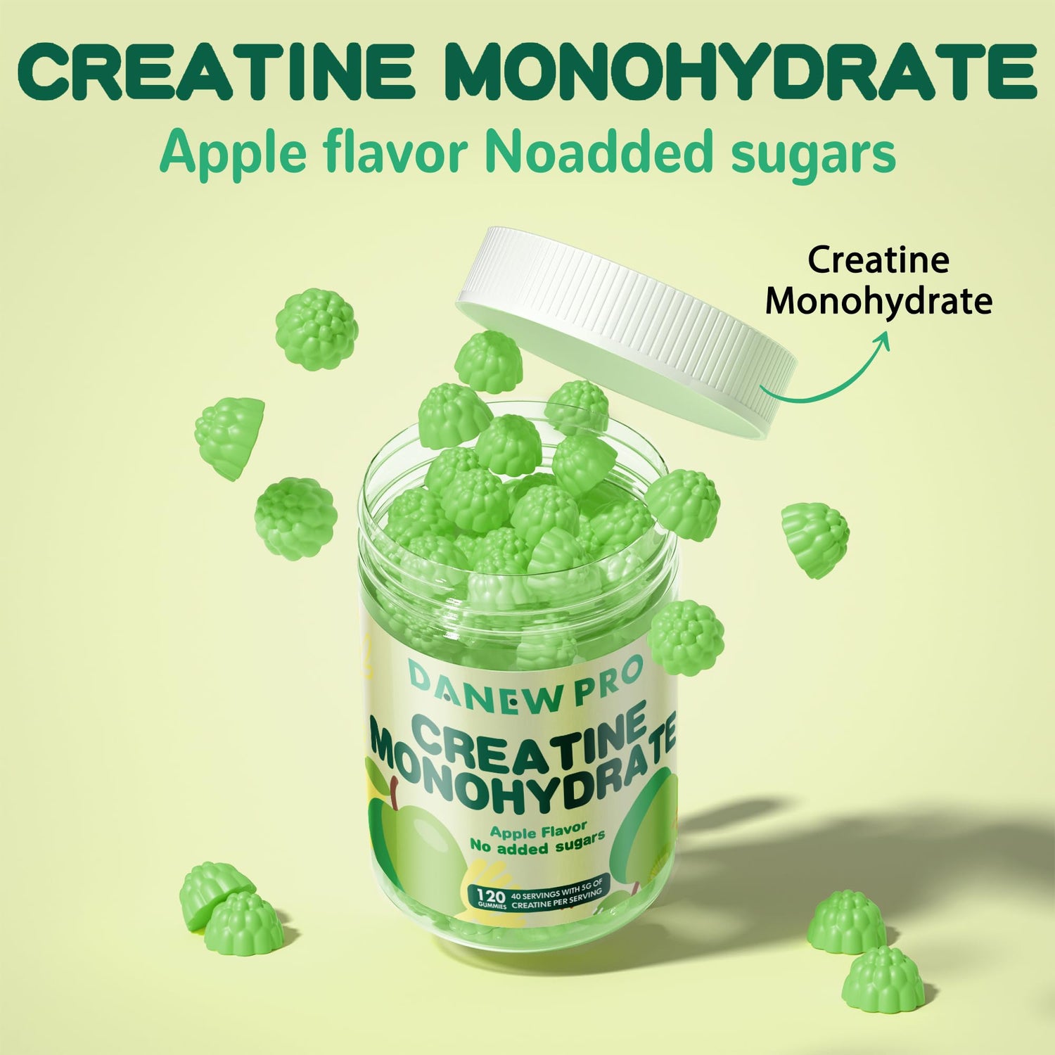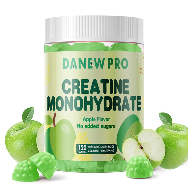 DANEW Pro Creatine Monohydrate Gummies 5000mg for Men & Women, Creatine Monohydrate for Muscle Strength, Muscle Builder, Energy Boost, Pre-Workout Supplement(120 Count)-Apple Flavor