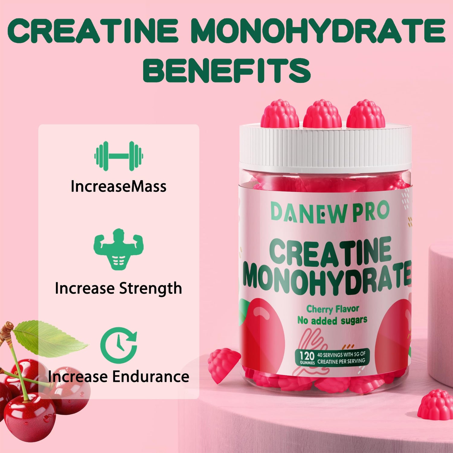 DANEW Pro Creatine Monohydrate Gummies 5000mg for Men & Women, Creatine Monohydrate for Muscle Strength, Muscle Builder, Energy Boost, Pre-Workout Supplement(120 Count)-Cherry Flavor