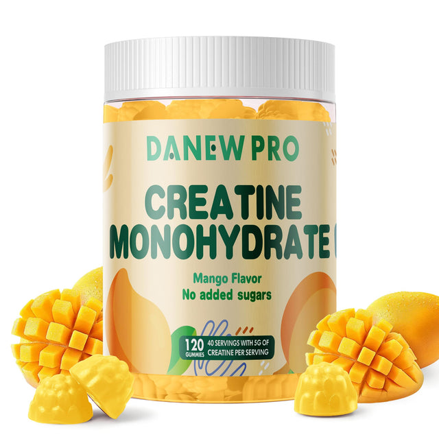 DANEW Pro Creatine Monohydrate Gummies 5000mg for Men & Women, Creatine Monohydrate for Muscle Strength, Muscle Builder, Energy Boost, Pre-Workout Supplement(120 Count)-Mango Flavor