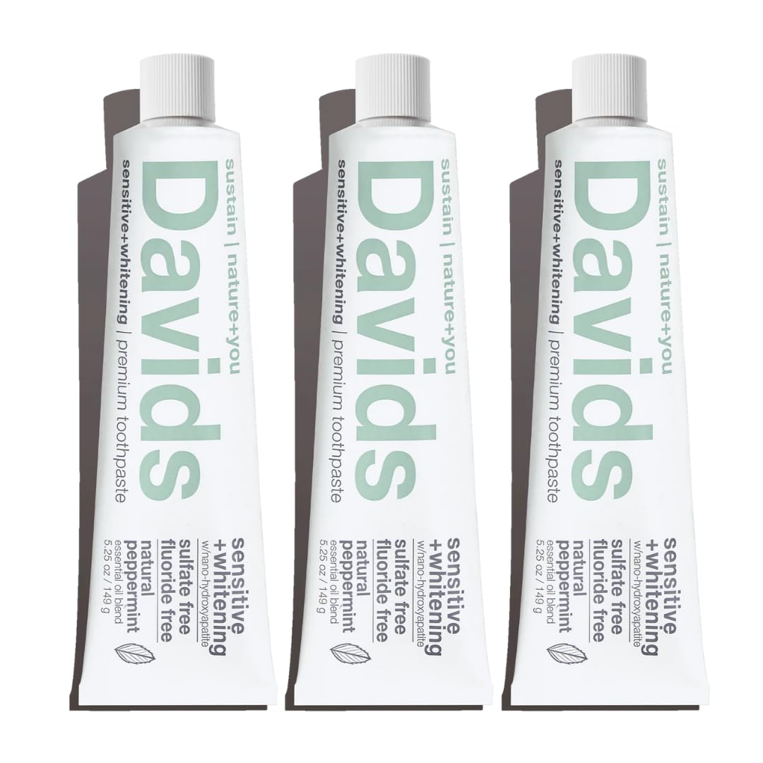 Davids Hydroxi™ Fluoride Free Nano Hydroxyapatite Toothpaste for Remineralizing Enamel & Sensitive Relief, Whitening, Antiplaque, SLS Free, Natural Peppermint, 5.25oz, Made in USA (3 Pack)