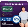 - DEPEND NIGHT DEFENSE: 48 count of Depend Night Defense Adult Incontinence Underwear for Men, size extra-large (44–54" waist)