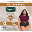 - Depend Silhouette Adult Incontinence & Postpartum Bladder Leak Underwear for Women, maximum absorbency, size extra large (50-60" waist), 48 count (2 Packs of 24)