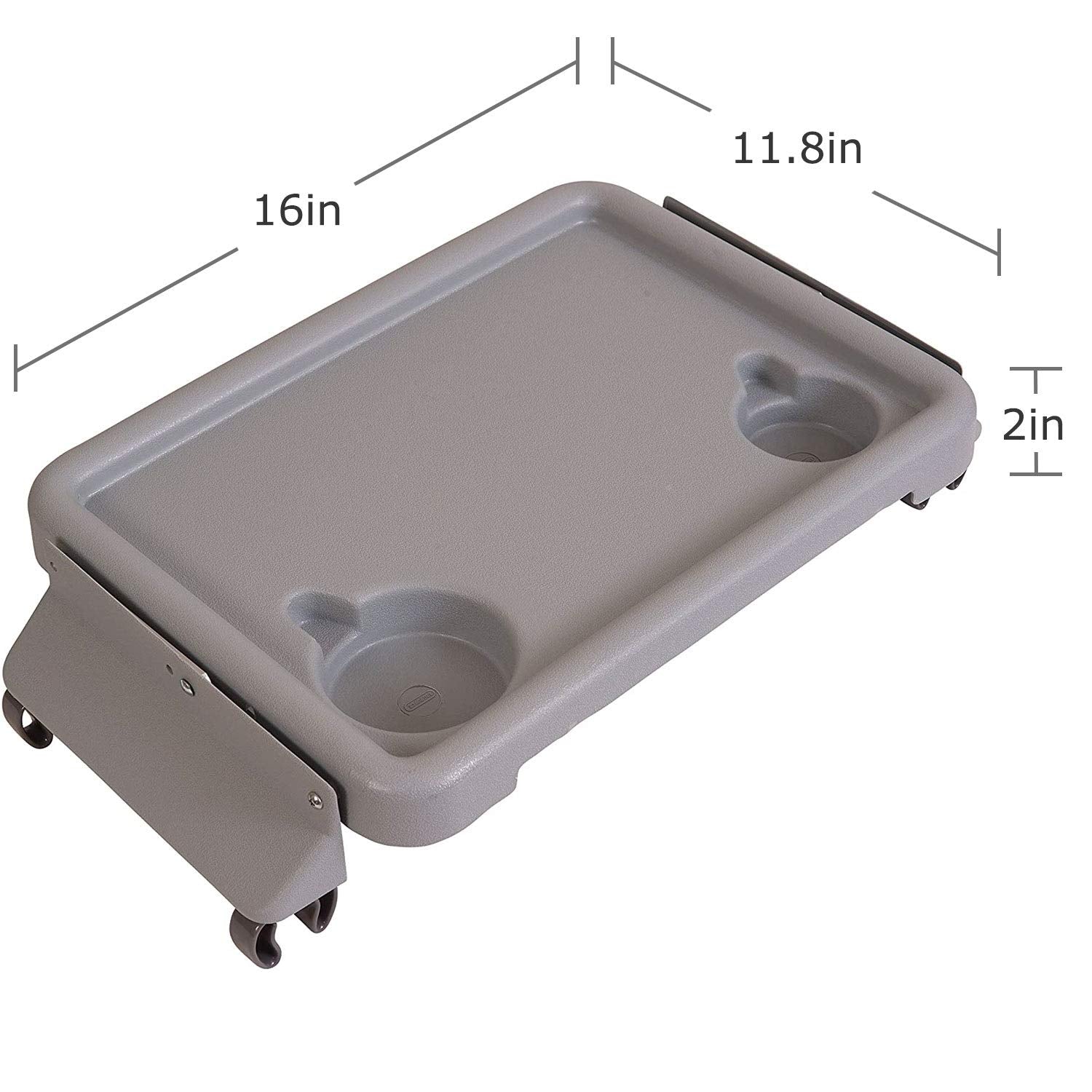 - Walker tray with cup holders is easy to clean and is made of durable, lightweight plastic. tray table for walker measures 16 x 11.8 x 2 with two deep and stable cup holders. walker tray is 18 inches between the centers.