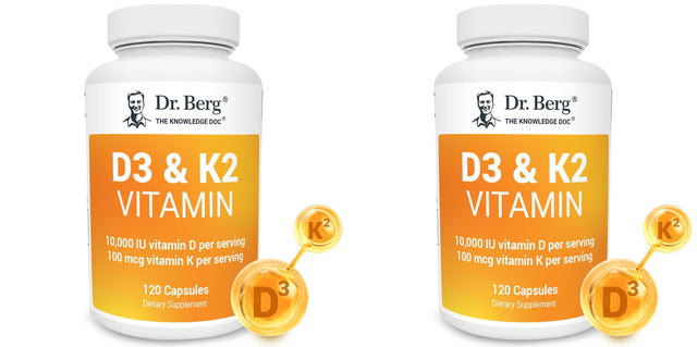 2 Pack Dr. Berg Vitamin D3 K2 w/MCT Powder - Includes 10,000 IU of Vitamin D3, 100 mcg MK7 Vitamin K2, Purified Bile Salts, Zinc & Magnesium for Ultimate Absorption - K2 D3 Vitamin Supplement - 120 Capsule
