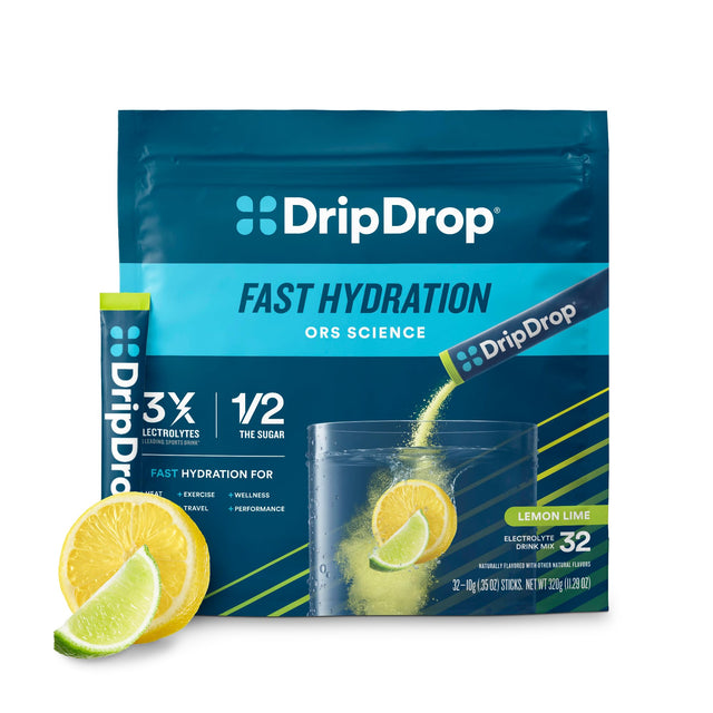 DripDrop Hydration Packets - Lemon Lime - Single Serve Electrolytes Powder Drink Mix - Non-GMO, Gluten Free, Vegan - 32 Sticks