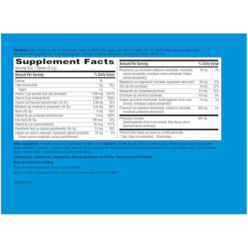 - 50ct of Emergen-C Immune+ Triple Action Immune Support Powder, with 200mg of BetaVia (R), 1000mg Vitamin C per serving, B Vitamins, Vitamin D, Zinc and Manganese (2)