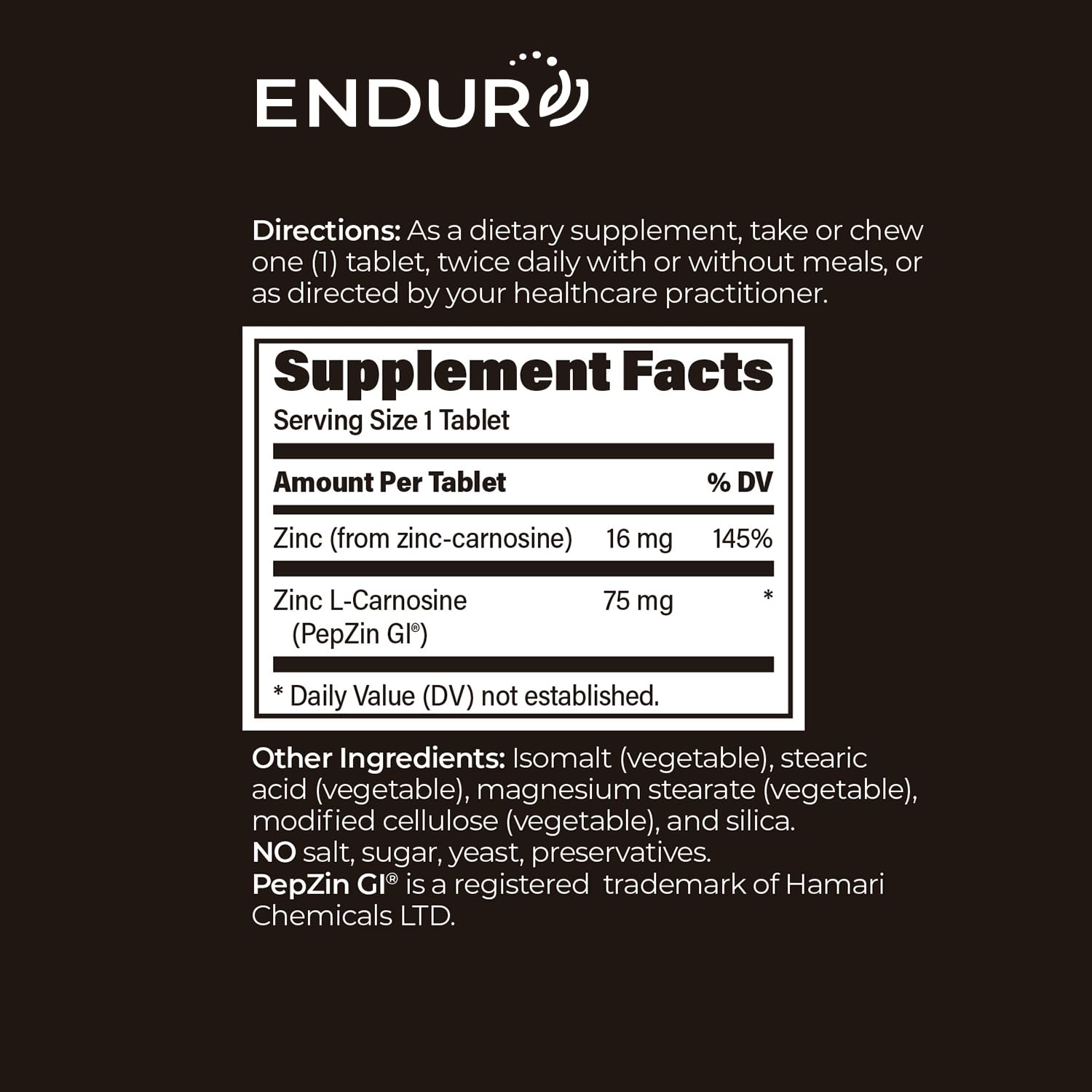 - SUPPLEMENT FOR STOMACH SUPPORT: Endur's Chewable PepZinGI combines zinc and L-carnosine to help support stomach lining integrity and promote digestive comfort*