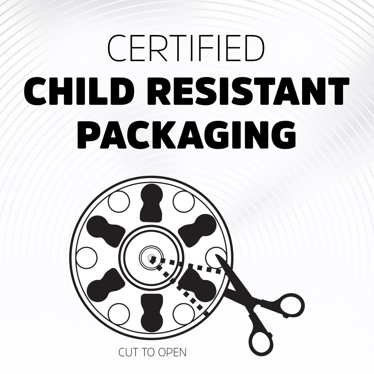 - Certified child resistant packaging - 100% child resistant in CRP testing* *Senior Adult Test, Sequential Child Test, CPSC 16 CFR PART 1700.20, August 2023, Prepared by Child Related Research, Inc