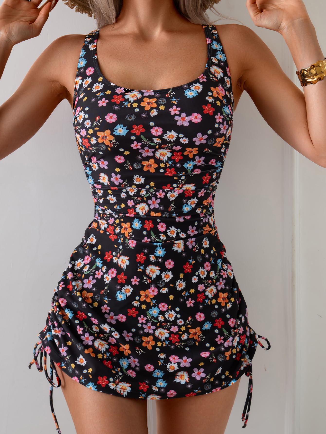 - Modest Bathing Suit for Women: The side drawstring allows you to raise as high as you want, the tie knot at the hem makes it to be feminine and cute, accentuating your curves