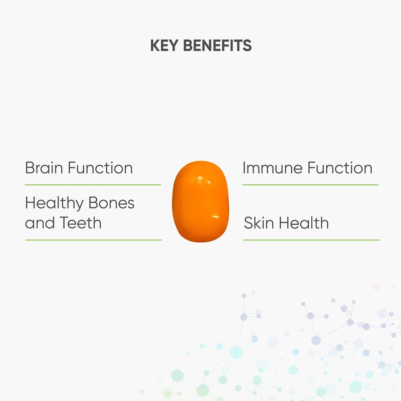 - Chewy natural orange flavoured omega-3 jelly splats providing 270mg of DHA & 400IU of vitamin D to support healthy brain function.