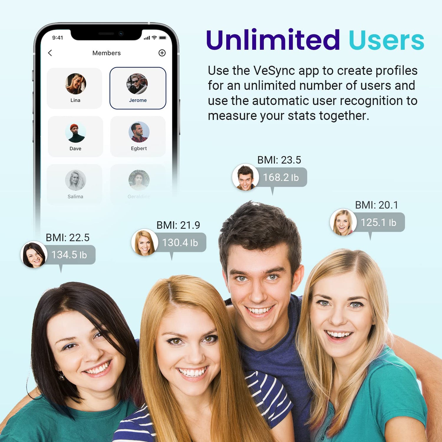 - Weigh Smarter: Pair your scale with the free VeSync app via Bluetooth, to easily track daily/weekly/monthly progress and gain insight into your fitness routine. Rest assured, VeSync will not share your personal information with any third parties