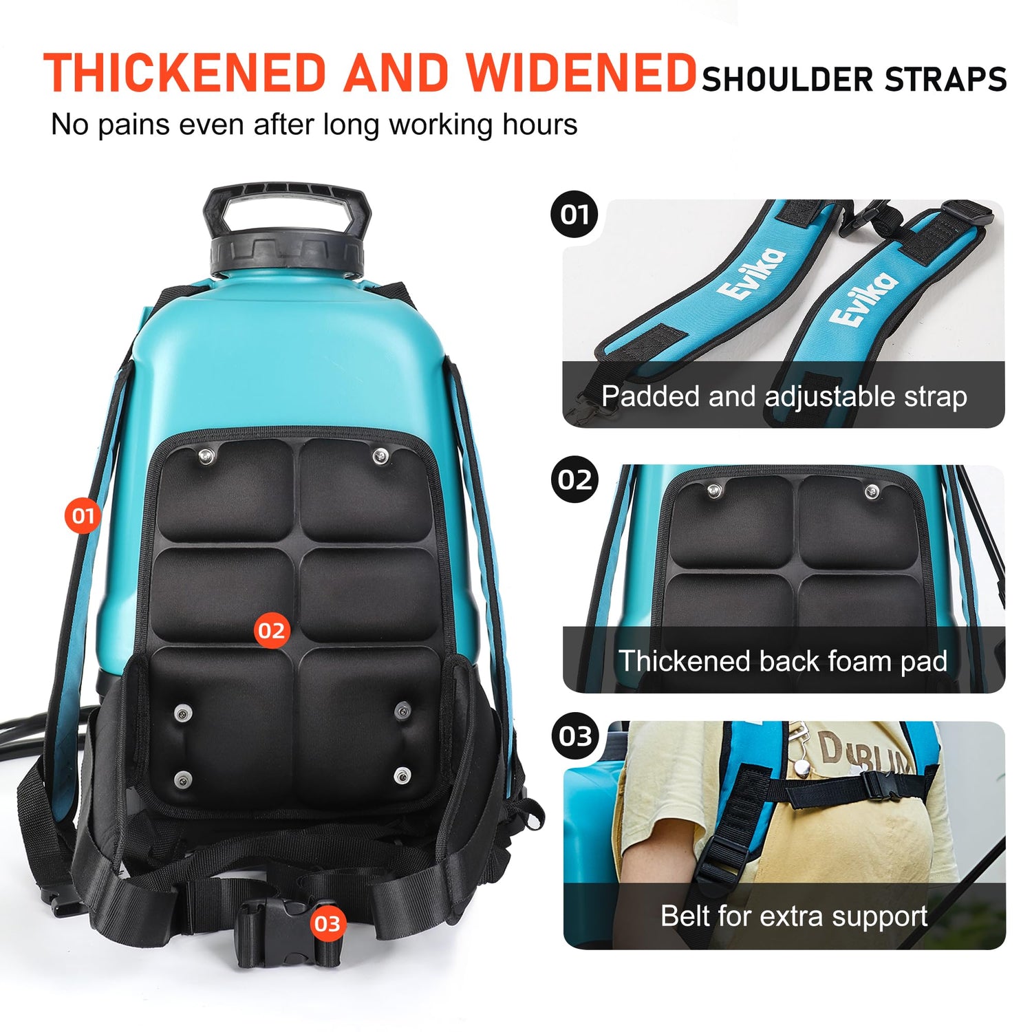- ๐๐จ๐๐ค๐ข๐ง๐ ๐๐๐ง๐๐ก๐๐ฅ๐ - The garden sprayerโs handle can be locked for continuous spraying effortlessly. Thickened and widened shoulder straps ,belt and thickened back foam pad provide better support for long hours of work without pain