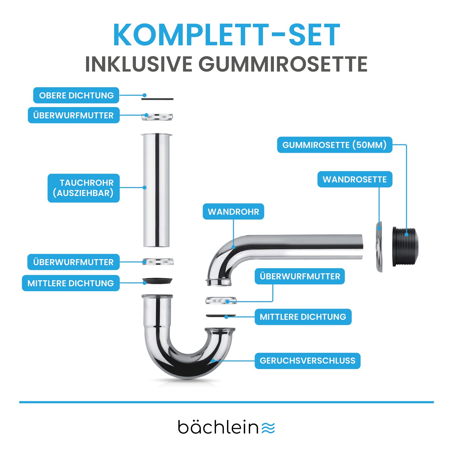 - RELIABLE FUNCTION - Solid, chrome-plated brass and precisely fitting silicone seals keep the siphon permanently sealed and give limescale and corrosion no chance! Complete set including rosette!